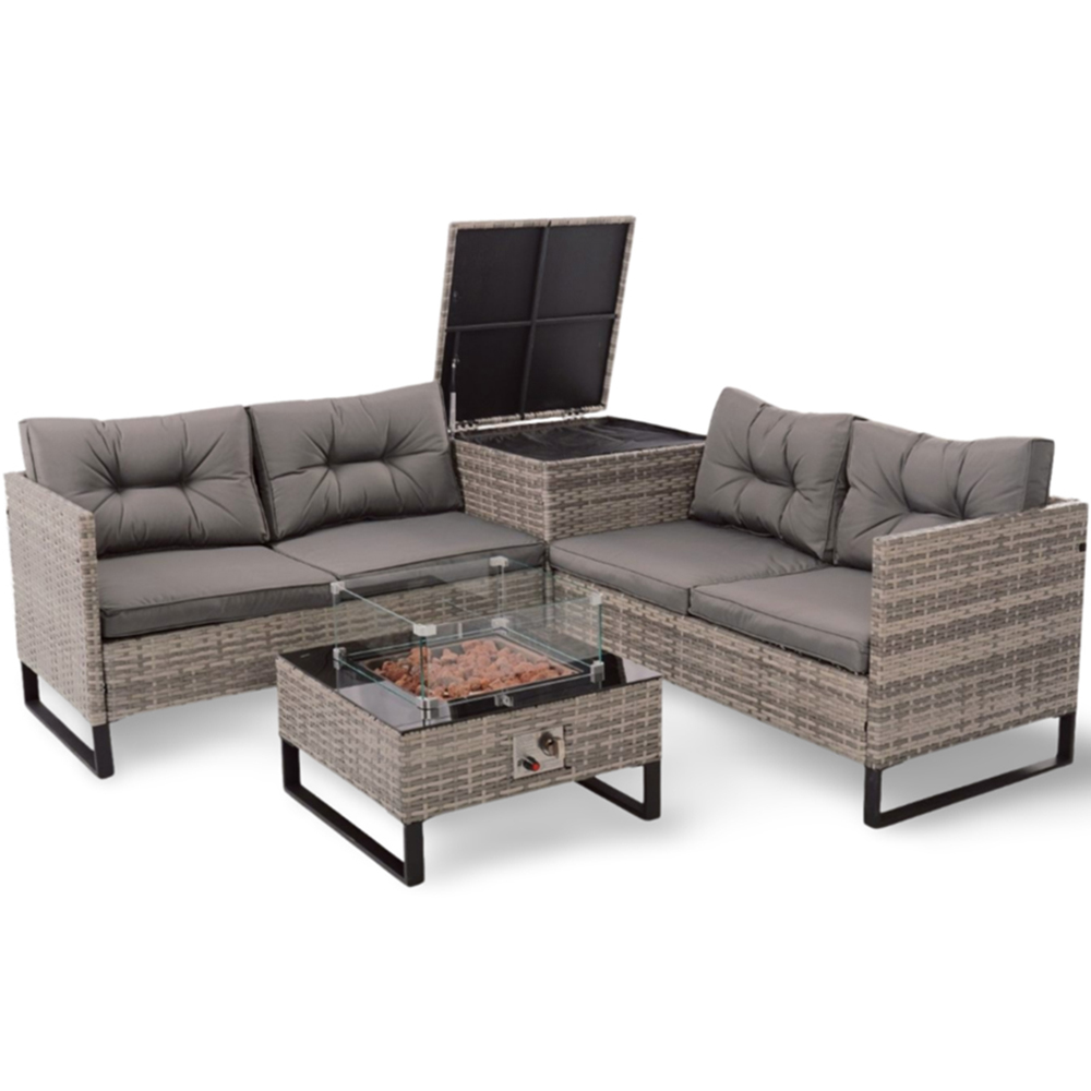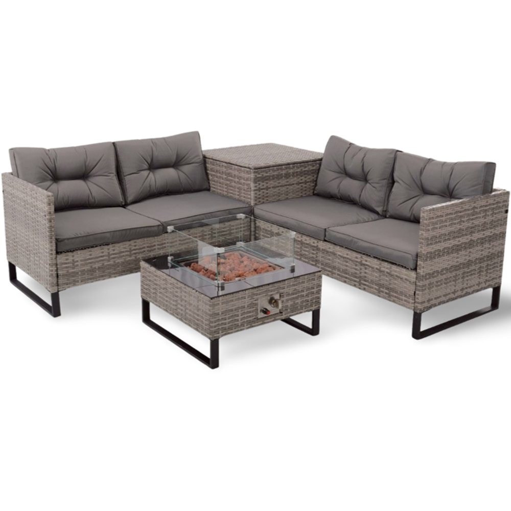 Outdoor Living The Palma 4 seater Grey Rattan Firepit Storage Corner Sofa Set