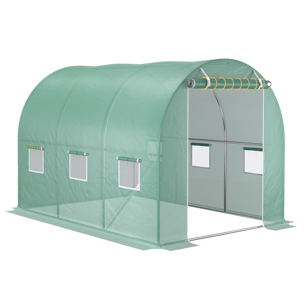 Outsunny 10 x 7ft replacement greenhouse cover allows you to keep your plant growing going if the old shell should ever come to damage. This replacement cover offers an easy way to prolong your greenhouse frame when your old cover becomes damaged. Ensures you can grow plants, vegetables, fruits and herbs all year round. Perfect for bigger outdoor spaces, such as large gardens and allotments. The cover features built-in windows on each side that brings in fresh air. Each window rolls up and holds in place with the fasteners. The durable plastic formation of the PE cloth cover ensures the inside is protected from light rain and light wind while keeping the heat trapped, the perfect conditions for healthy growth all year round. It attaches to the frame with included tape.