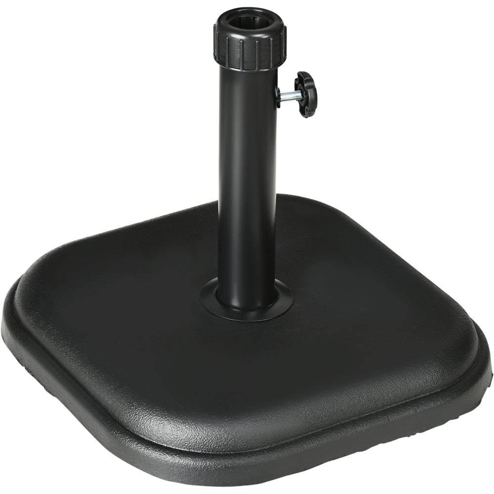 For parasols you use in the middle of tables, look to this Outsunny outdoor umbrella stand base to hold it in place. It is designed for garden parasols with canopies up to 2.5m in diameter, with 32-38mm diameter sized poles. The tough plastic shell makes it suitable for outdoor use, with a concrete filling so it stands the parasol steady in place. Features a tightening knob, once the umbrella is in place, all you have to do is tightening for full security. Please measure your umbrella pole diameter in advance to ensure that the base can fit well. Overall Dimension: L 36 x W 36 x H 31cm. Bottom Base Size: L 36 x W 36 x H 5cm. Net Weight: 11kg.