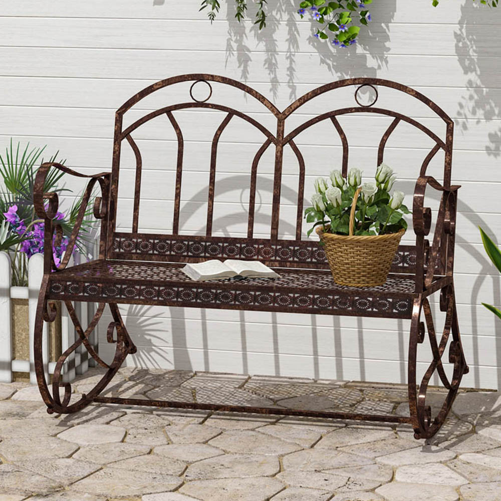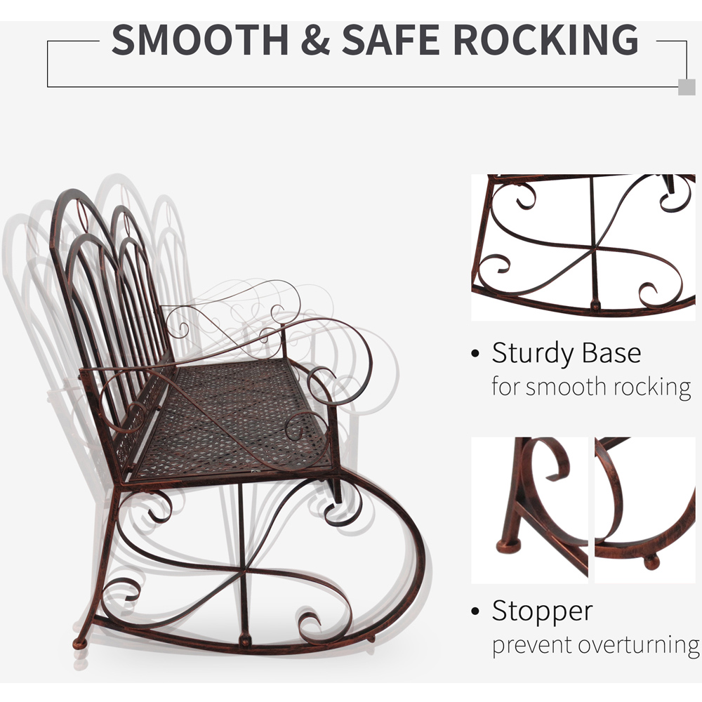 Outsunny 2 Seater Bronze Metal Garden Rocking Chair