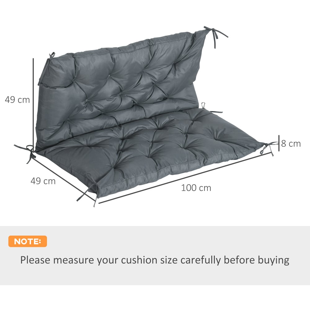 Upgrade the look and feel of your two-seater bench with the Outsunny Dark Grey Bench Cushion. This garden seat cushion is ideal for your outdoor bench as it will keep you rested and relaxed for a long time. It is a soft padded cushion covered with breathable polyester fabric and offers a smooth feel while relaxing. This cosy cushion is water and stain resistant with tie fastenings to fix it securely in place. It is easy to spot clean and not machine washable. Dimensions: 100 x 98cm.