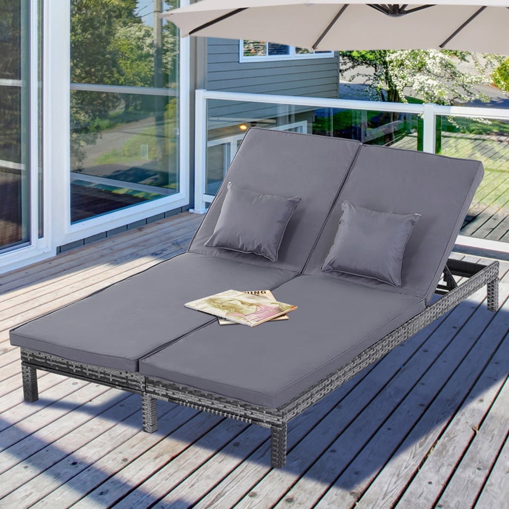 Outsunny 2 Seater Grey Rattan Sun Lounger