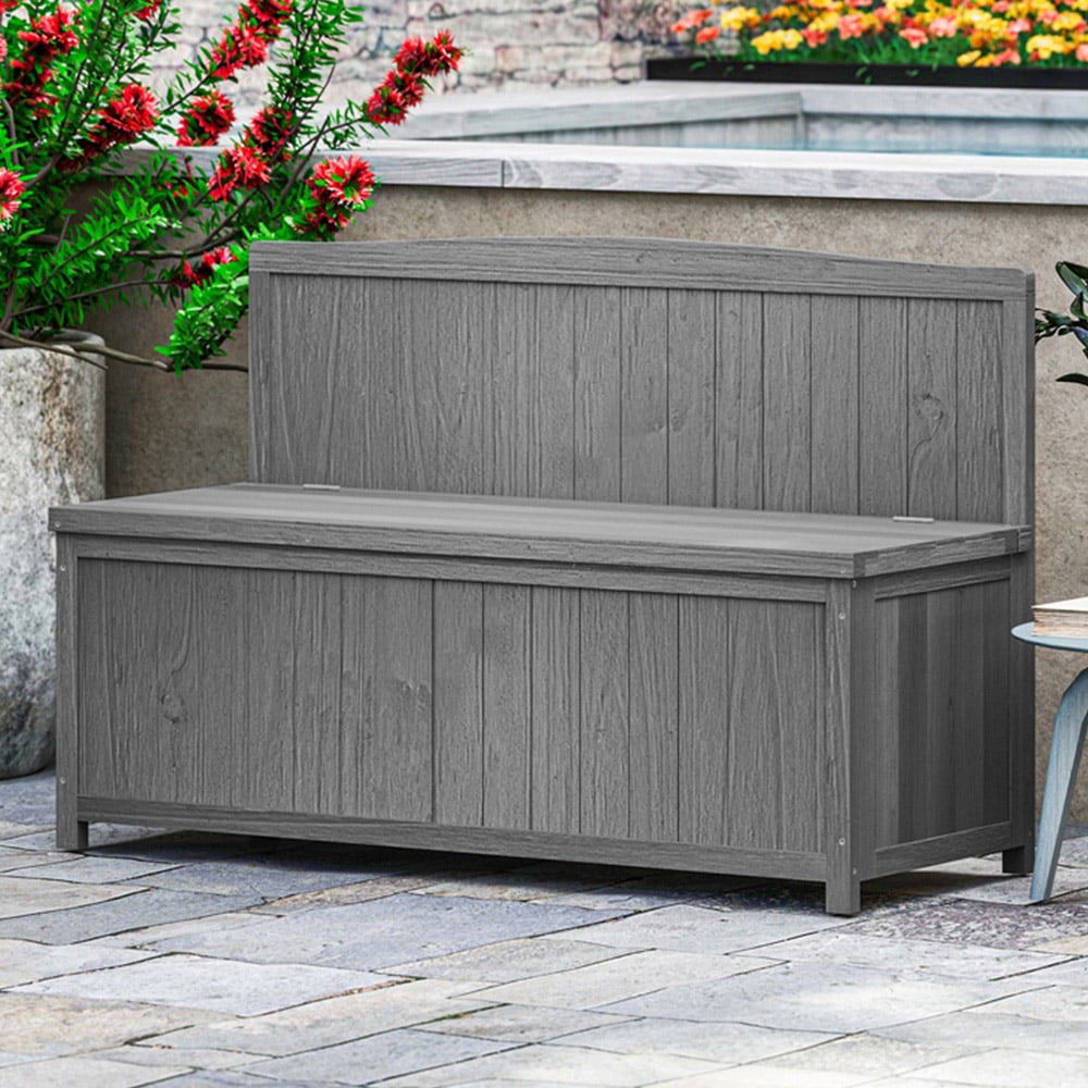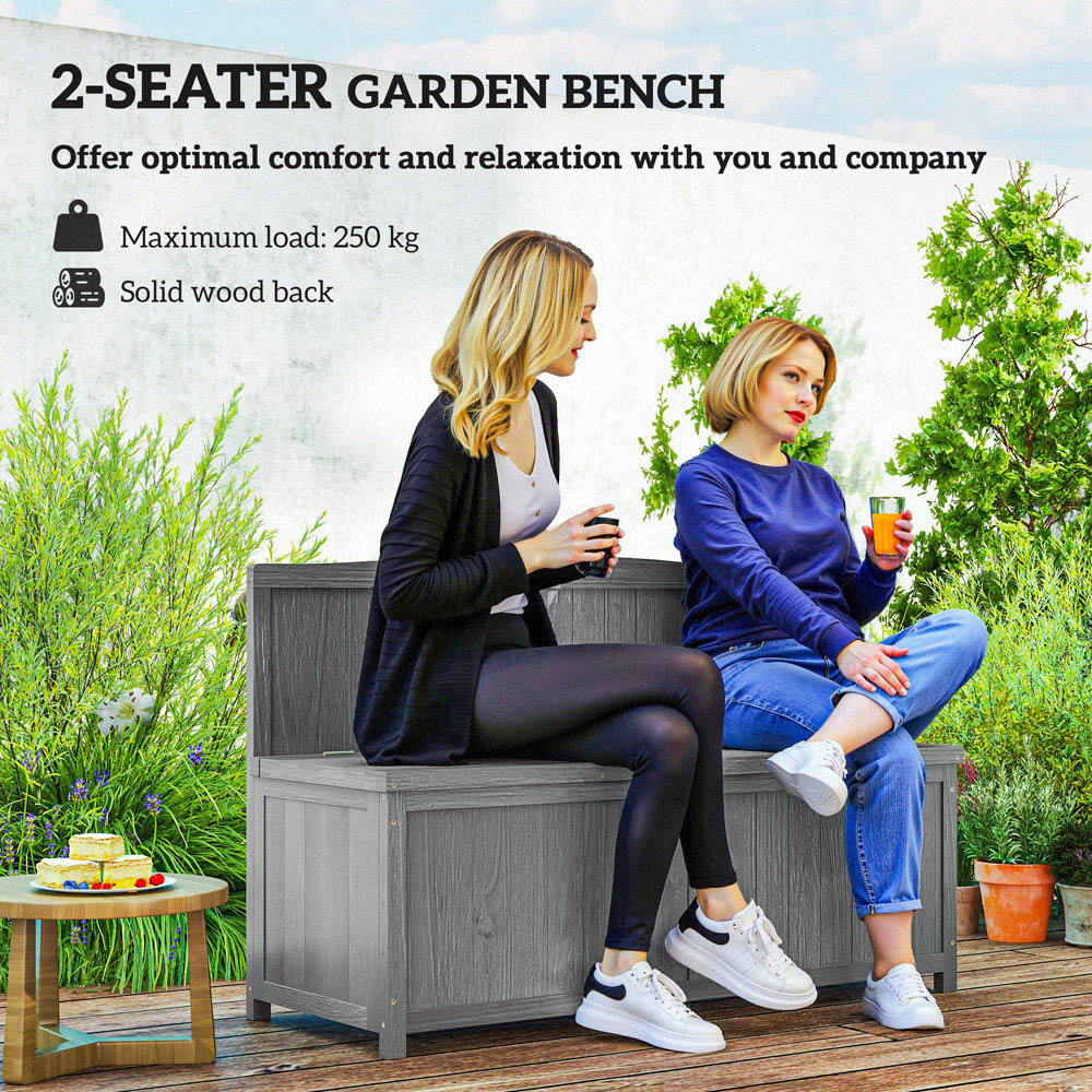 This Outsunny garden storage bench gives you a place to relax and space for keeping your outdoor essentials stored. The varnished surface protects the fir wood structure against weathering so the park bench lasts longer outdoors. The ergonomic shape of the bench allows you to sit comfortably, with its maximum 250 kg bearing weight allowing the wooden bench to hold up to two people. No garden is complete without this handy garden bench with storage. A quality construction, our wood garden bench is strong for everyday use outdoors. Suitable for the patio, front garden and other garden areas. Water-based paint for a beautiful and protective top layer. The smooth surface makes this wooden garden bench can be wiped clean with a damp cloth. Suitable for keeping gardening tools outdoor equipment and supplies all together.