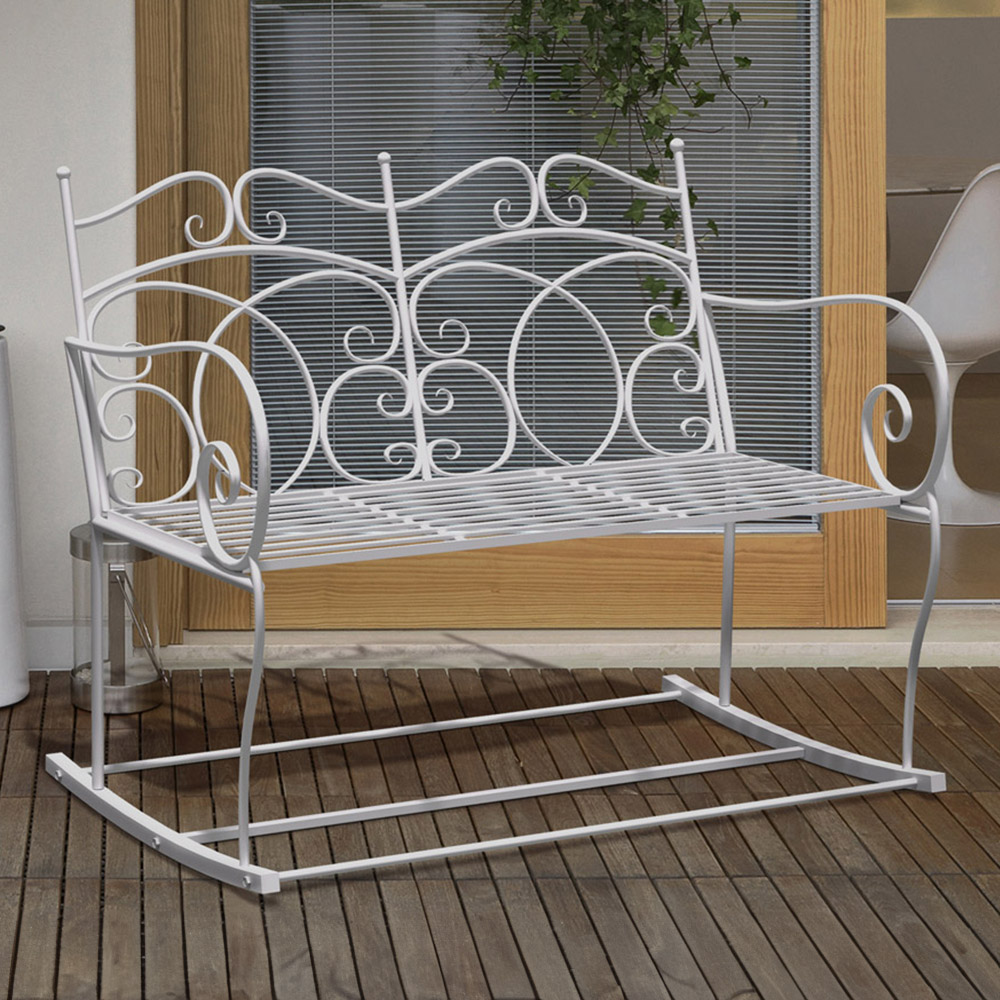 Upgrade your outdoor space with the Outsunny 2 Seater White Rocking Bench. This garden rocking chair is a great piece of furniture to have in your garden and patio. Made from powder-coated metal with a floral design, this weather-resistant outdoor rocking chair will be a great complement to any home. It is lightweight but sturdy construction with a remarkable weight capacity of 200kg. It features armrests, making this curved garden bench comfortable while you enjoy the sunshine. Protect your garden furniture with our durable and waterproof covers. Explore our wide range of heavy-duty Garden Furniture covers to find the perfect fit for your needs.