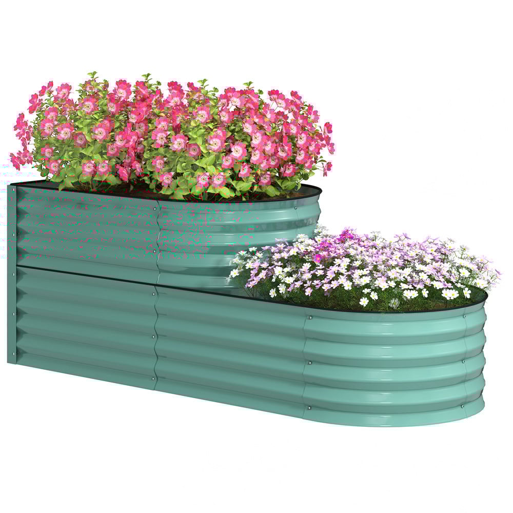 Outsunny 2 Tier Dark Green Galvanised Raised Garden Bed