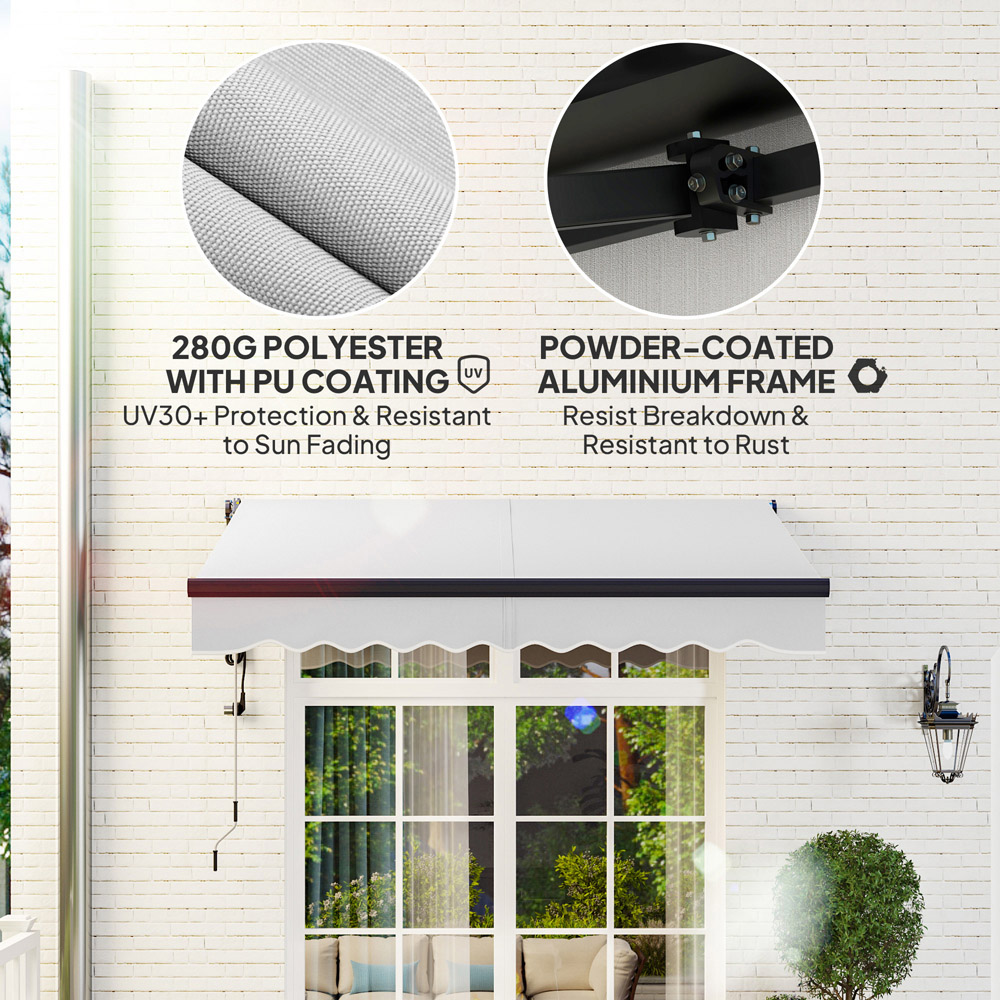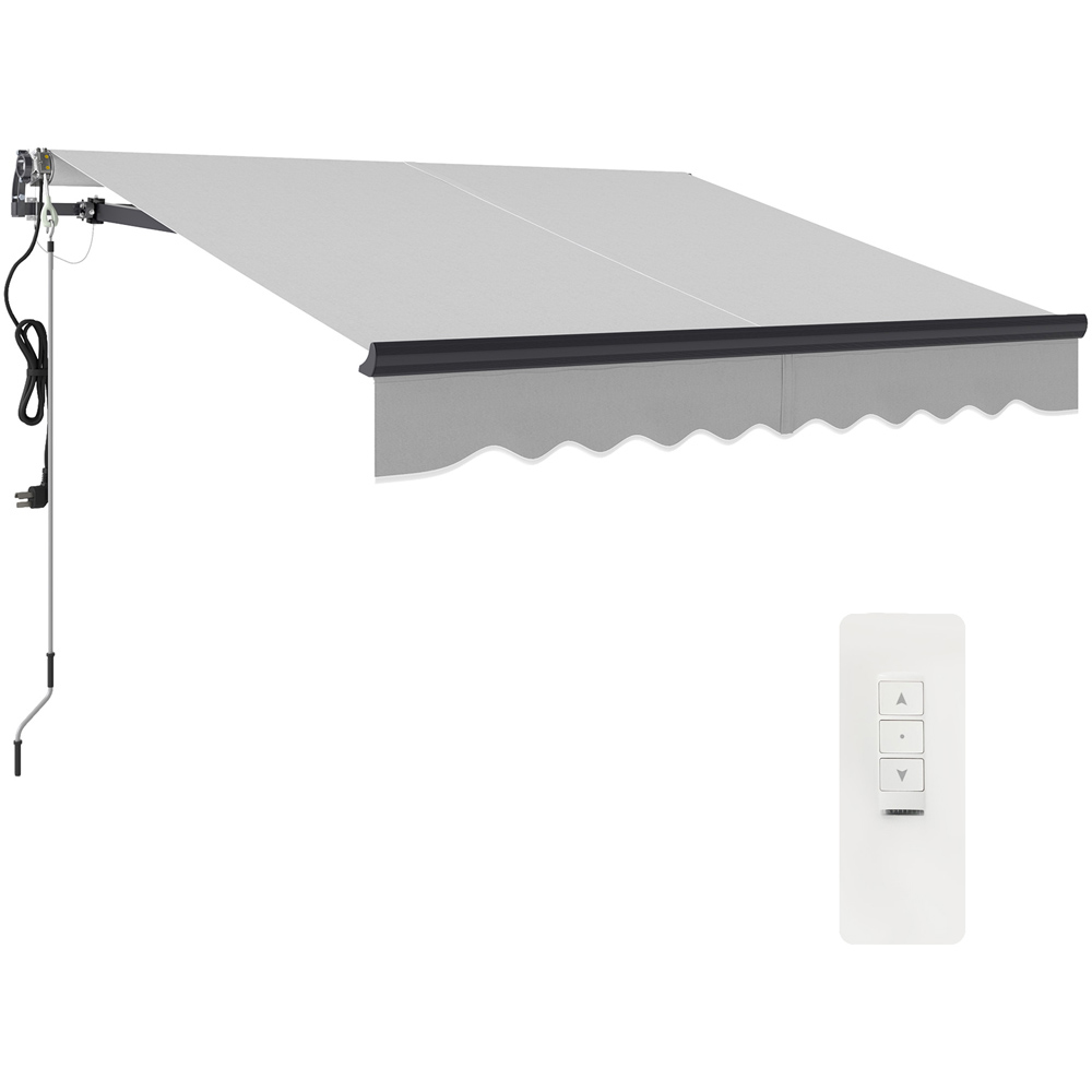 Enjoy the outdoors in style with the Outsunny electric awning! Effortlessly extend this garden awning canopy with a remote control or manually twist the hand crank. Crafted from rust-resistant aluminium and 280g/m² polyester that blocks harmful UV rays, this retractable awning lets you lounge comfortably, adjusting the tilt from 45° to 85° to cast your shade over your patio or window.