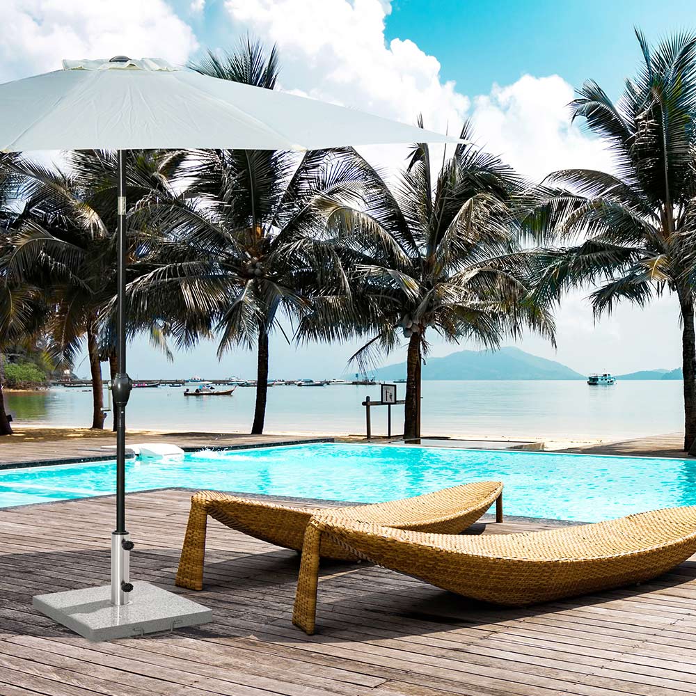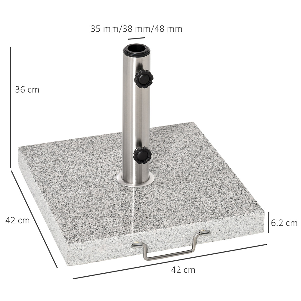 This stylish base is a perfect accessory to have to complete your parasol. The base is made from marble with a metal upright to hold the parasol. It can accommodate most poles from 3.4cm, 3.8cm, and 4.8cm. As the base is made of marble, it is heavy. And to make it easier to move around, there is a handle on one side and wheels on the other to make it effortless to relocate. This is a great product to have in your garden or patio. It will complete your garden set. It comes with two-foot pads to prevent the marble from directly touching the ground.