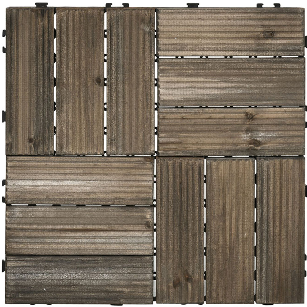 This Outsunny 27 Piece Interlocking Decking Pack is designed to transform your flooring, instantly. Fitted together, they'll meet the demands of the floor, no matter if in a back garden space, a balcony area, a patio or beyond. Each piece is made from solid wood for wearability, with PVC bottoms for slip resistance, and they are also resistant to swelling, decay and fading. This 27-piece pack will cover a 2.5sqm area; the interlocking design makes it so easy to set up into place. With an easy interlocking design, the tiles offer a hassle-free way to set up and take down, these garden tiles do not require any tools to fit into place. Single Piece Dimension: L 30 x W 30 x H 2.5cm.