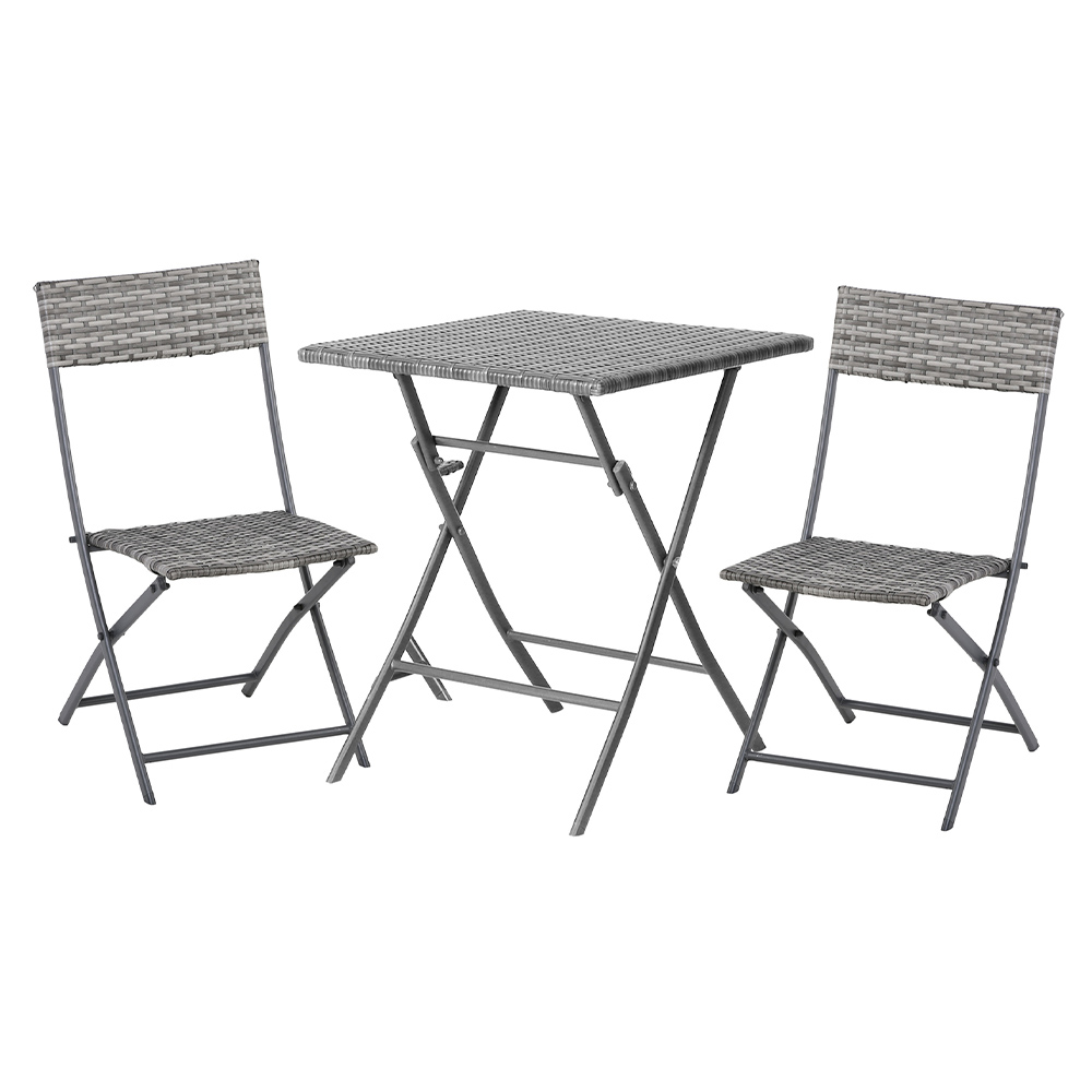 This three-piece rattan bistro coffee set in grey is a great solution for your garden, patio or balcony. Made with high-quality metal tubing and covered with PE rattan, it will last for years. This rattan two chairs and table set for garden rattan set is built from durable all-weather PE wicker on a weather-resistant steel frame, suitable for outdoor gardens, parks, patios, backyards and conservatory or indoor rooms. This sleek, contemporary garden bistro set includes two single chairs and one top-side table that is sure to complement any patio garden setting. The set is a great addition to any home. The whole set can easily be folded and stored away to create space when not in use. This set is not just useful but practical. This garden bistro set for two is a lightweight and portable design easy to carry and convenient to store. Protect your garden furniture with our durable and waterproof covers. Explore our wide range of heavy-duty Garden Furniture covers to find the perfect fit for your needs.
