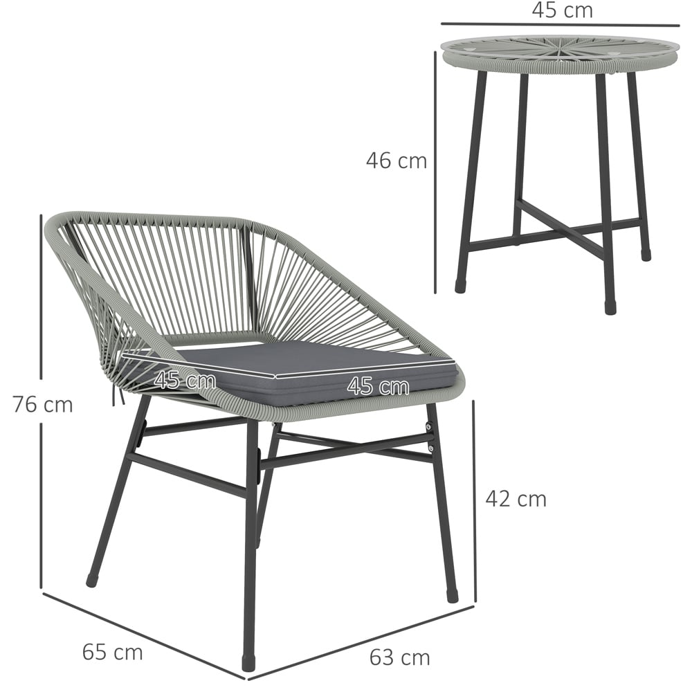 Brighten your outdoor space with the Outsunny garden furniture set, a charming bistro, or a chic lounge addition for small spaces. This small balcony furniture set has two chairs and a matching glass-top table. Powder-coated steel frames offer a strong core to bistro table and chairs. Soft seat cushions make this small garden furniture a stunning and cosy corner for friend hangouts, daily talk and sunset viewing.
