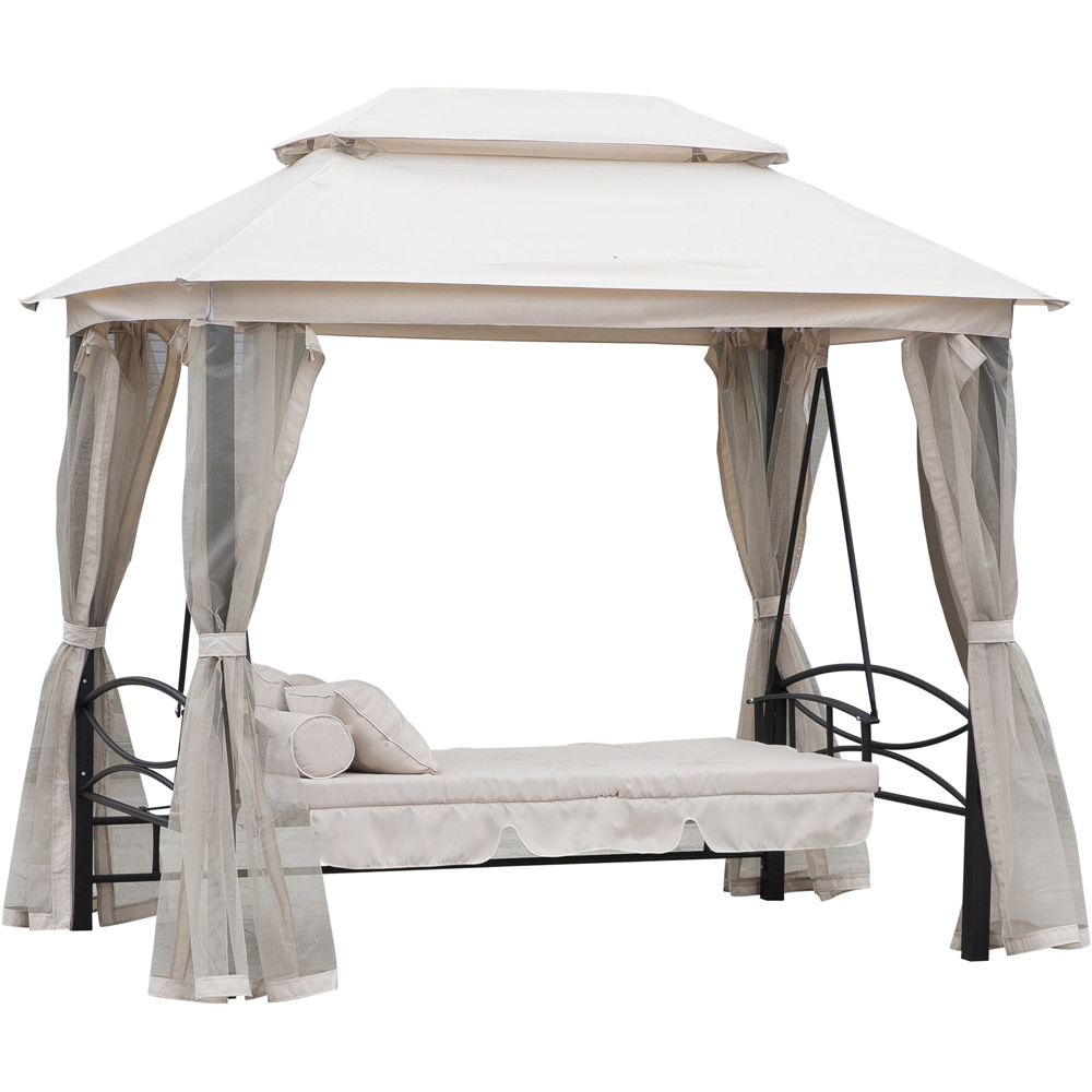 Outsunny 3 Seater 3 in 1 Convertible Swing Chair and Bed with Nettings