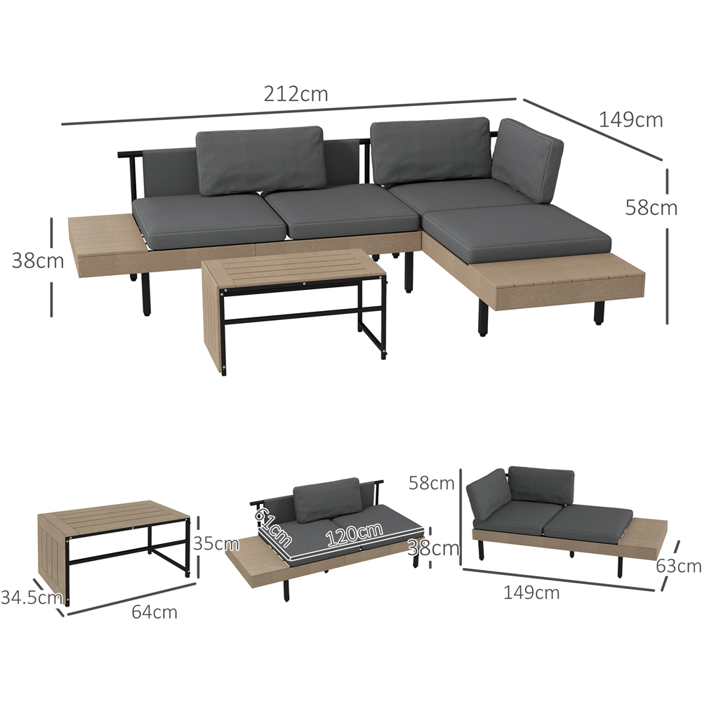 Outsunny 3 Seater L Shaped Garden Sofa Set