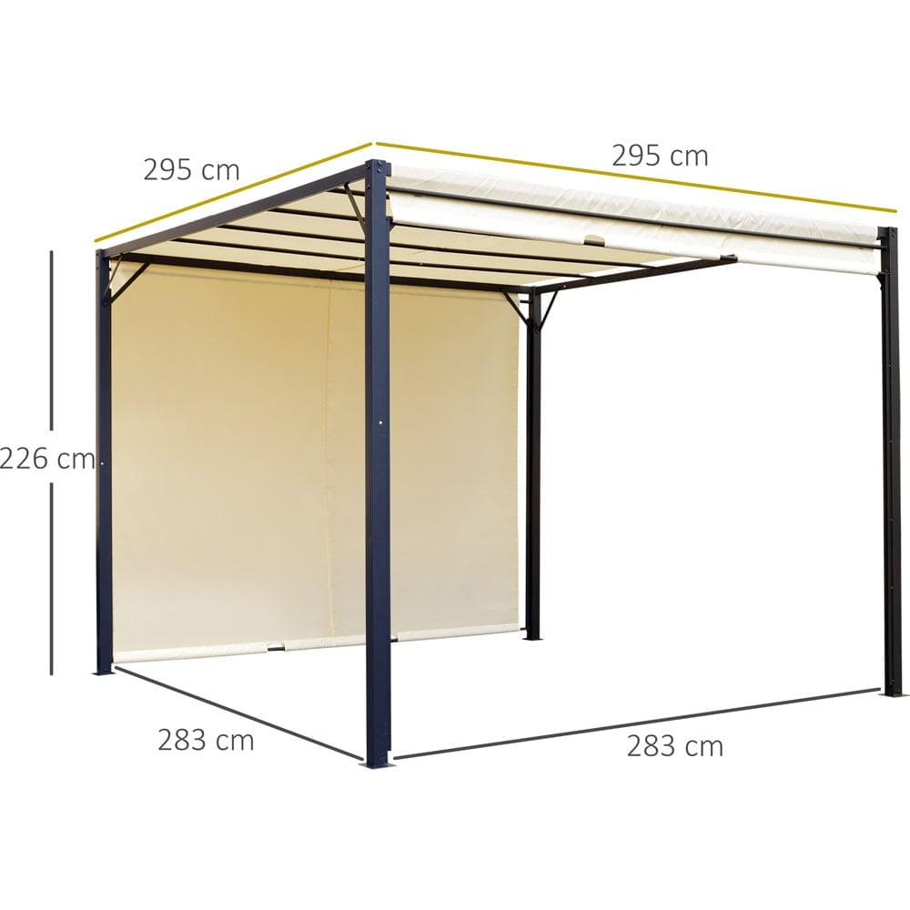 Create the ideal outdoor living space with Outsunny 3 x 3m Garden Metal Gazebo. The fabric of this canopy cover is sunscreen, making it block some UV rays. The steel construction offers added durability and long-lasting use while the reinforced corner support makes the structure sturdy and tough. The leaking holes prevent water accumulation while the side of the shaded area is adjustable and removable with this outdoor gazebo.