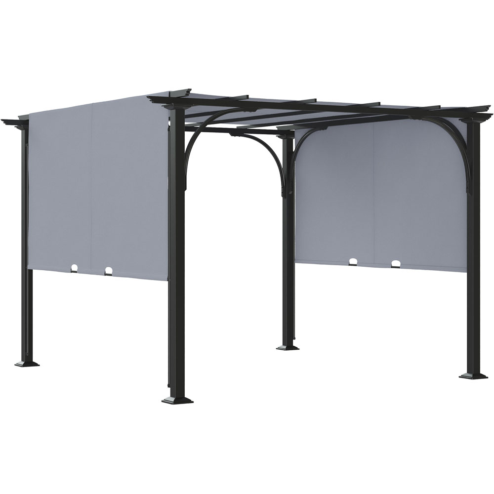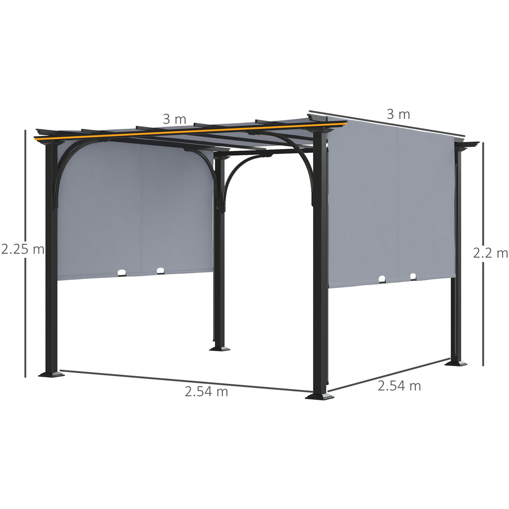 Enjoy the sunshine or relax in the shade with the Outsunny 3 x 3m Garden Pergola Gazebo. It creates a cosy space where you can feel the breeze in your hair and the sun on your skin. The polyester top with PA coating helps protect you from the harsh sun. The slide rail design of the pergola - allows the cloth to slide horizontally by pulling on a drawstring. Equipped with eight ground nails into the grass for the hard floor, they can be inserted into the feet for more stability of the pergola kit.