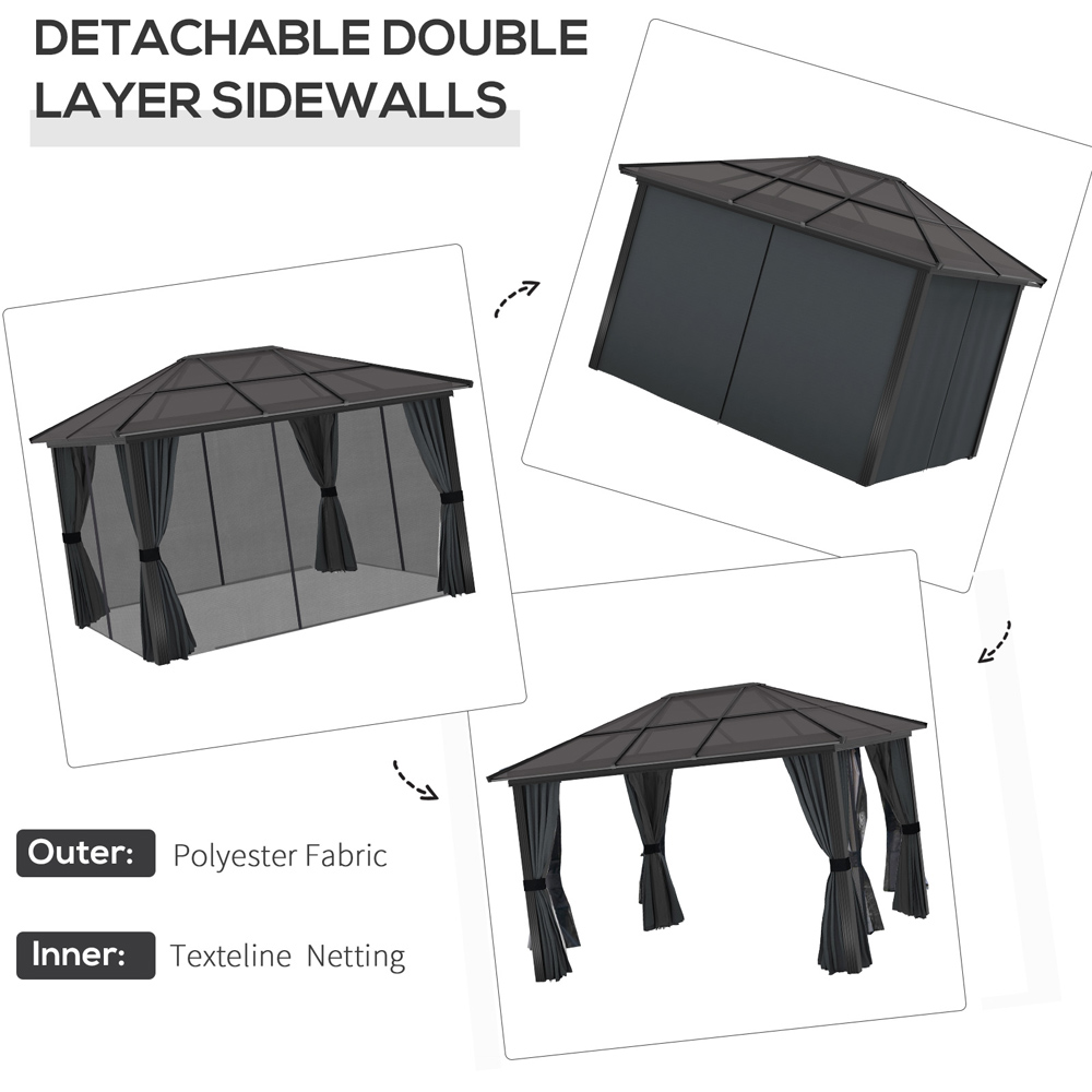 Make your gatherings memorable with the Outsunny 3 x 3.6m Black Aluminium Frame Gazebo with Netting. Imagine yourself lounging in your backyard, sipping on a cool drink, enjoying the gentle breeze and the beautiful sounds of nature all around you. Now, picture this idyllic scene under the shade of a gorgeous garden gazebo with a solid frame that will stand the test of time. This gazebo is the perfect addition to any outdoor space, providing both style and function. With its sturdy construction and premium materials, it is built to last and withstand the elements. Whether you're hosting a summer barbecue, a family gathering, or simply seeking a peaceful retreat from the hustle and bustle of everyday life, this garden pavilion is the perfect solution. With its elegant design and spacious interior, you'll be able to entertain guests, spend quality time with loved ones, or simply relax and unwind in your little slice of paradise. So why wait? Order your garden gazebo today and experience the ultimate in outdoor living.
