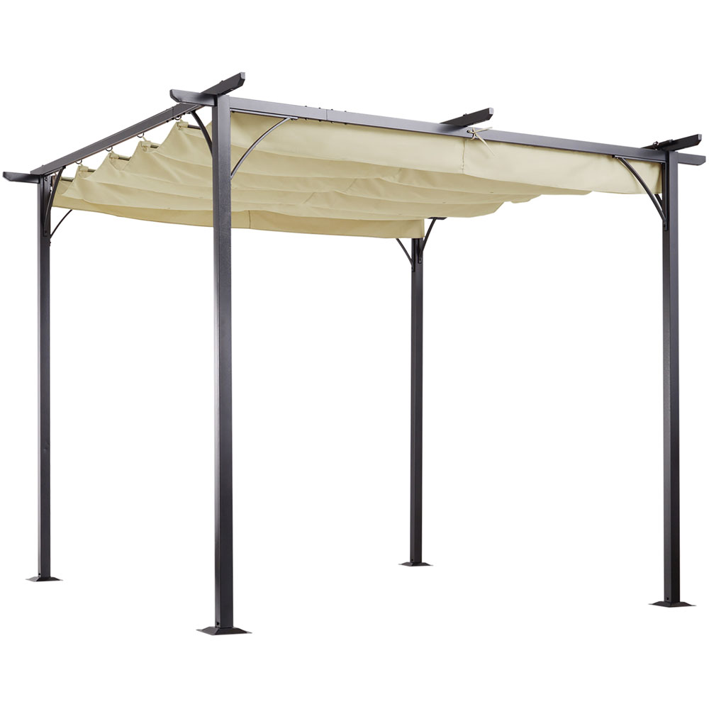 Create extra space for dining, socialising and relaxing with the Outsunny 3 x 3m Cream Metal Pergola Gazebo. With a retractable canopy roof - the metal pergola can be moved to any position depending on the occasion and the weather. Featuring an anti-rust steel frame that is strong and sturdy - it makes the garden pergola stay stronger for years to come. The UV-resistant canopy keeps you shaded on warm and sunny days while the grommet holes on the pergola canopy allow liquid to drain safely.