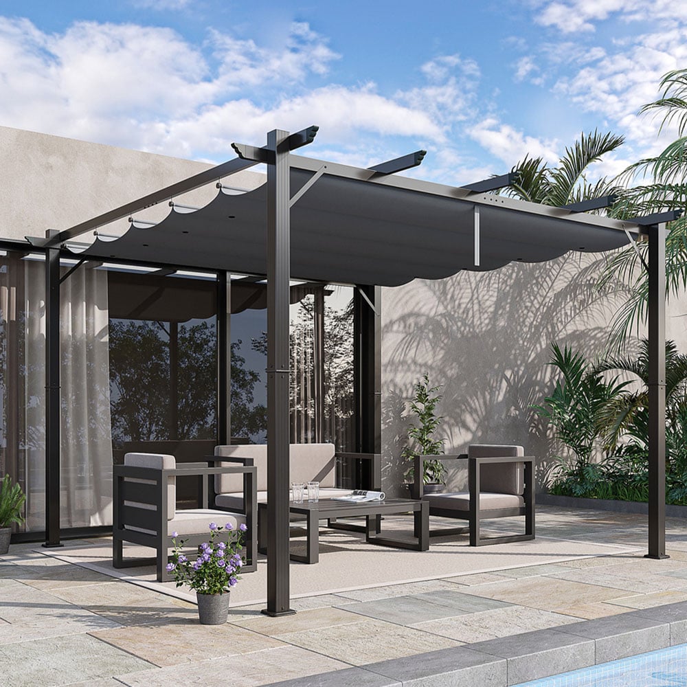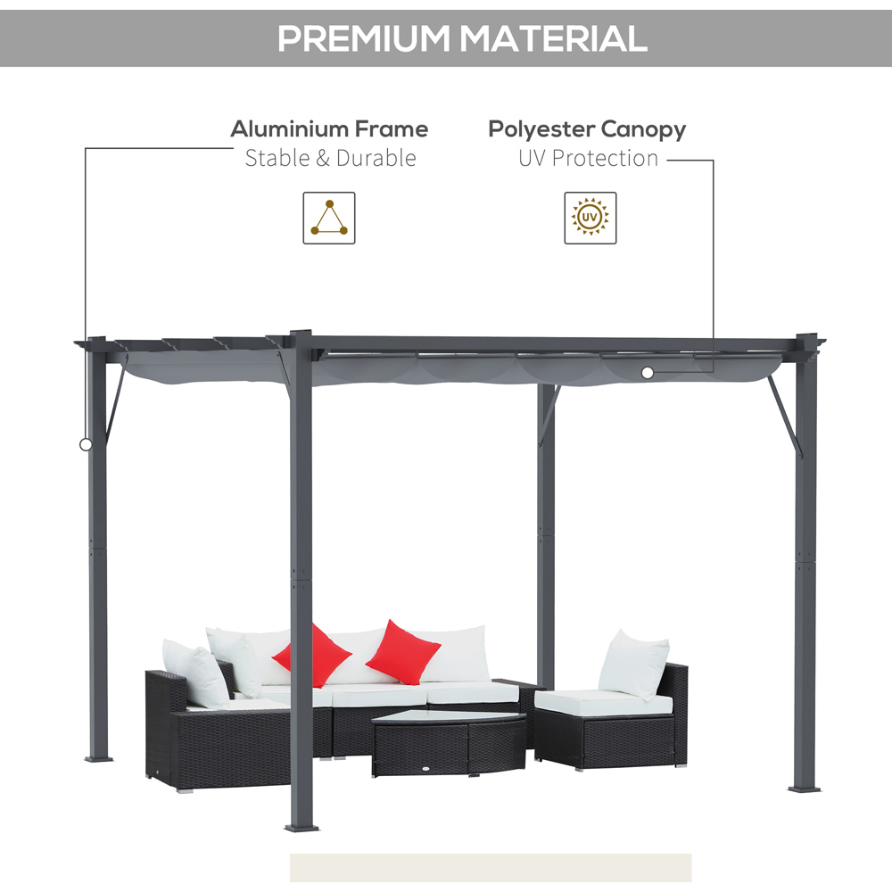 Create a shady and cool spot in the garden with this Outsunny 3 x 3 m gazebo: a decorative touch to your patio or garden. An excellent accompaniment to any party, barbecue or social gathering, the adjustable canopy is easy to move to the position of your choice - let in as much, or as little, shade as you want. Thanks to the aluminium frame and steel top bars, this is a piece to last throughout the seasons.