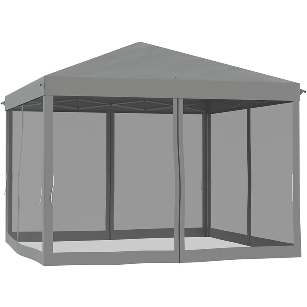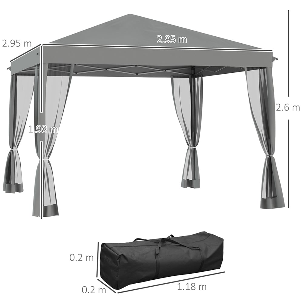Grab your favourite drink and enjoy the shade of freedom with this 3 x 3m pop-up gazebo with sides. The sturdy frame adds a durable place for you to relax in the shade. This portable garden tent is perfect for any occasion, such as family gatherings, picnics, camping or tailgates. You can easily and quickly assemble or take it down. The mesh sidewalls make it great for keeping bugs out so that you can enjoy the outdoors even if the sun goes down. The durable roof of the garden gazebo reduces heat and water. Breathable netting attached with hook and loop fasteners for easy assembly and removal, and zipper doors for easy access in and out of the camping gazebo.