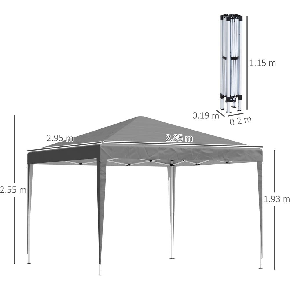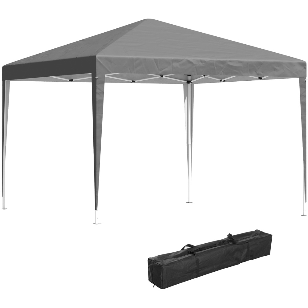 Add comfort and elegance to your outdoors with Outsunny 3 x 3m Grey Pop Up Gazebo. This gazebo is a great, no-fuss outdoor shelter. It is ideal for family parties, weddings, picnics, sports events, outdoor vendors, craft fairs, job sites and camping trips. This garden shelter provides easy set-up and takes down in less than a minute. It also comes with a portable carrying case. This party tent has a high-quality powder-coated steel frame which has high strength.