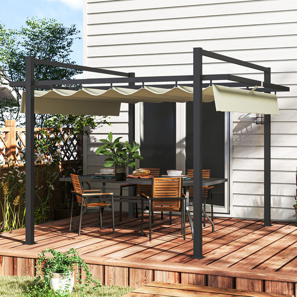 Outsunny 3 x 3m Khaki Aluminium Frame Pergola with Retractable Roof