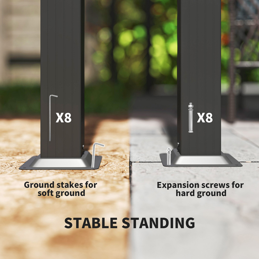 This Outsunny retractable pergola allows you to be in control - enjoy the sunshine or relax in the shade. Move the fabric roof panel to a position of your choice, letting you be fully in control. The aluminium structure is strong, with ground stakes and expansion screws included to attach to the floor. Grommet holes on the fabric for easy water drainage. Enjoy your outdoor space more than ever before.