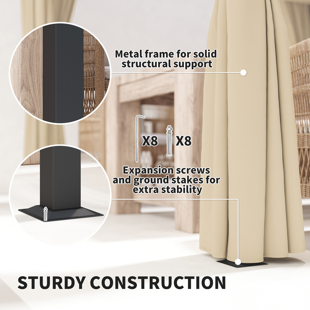 Outsunny 3 x 3m Khaki Pergola with Retractable Roof and Curtains