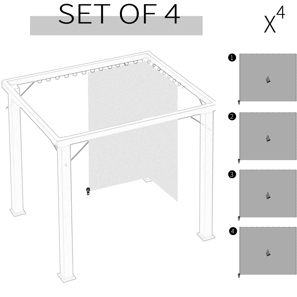 Ensure privacy for your gazebo with this Outsunny Light Grey Universal Gazebo Sidewall with Four Panels. These gazebo side panels are ideal for outdoor events like picnics, outdoor exercise, and barbecues. Made using high-quality material to ensure durability, this sidewall ensures you enjoy your outdoor leisure time without being disturbed while protecting you from nasty wind and sunshine. Also, the outdoor canopy sidewall is easy to set up and remove using the included hooks and 'C' rings. Plus, the double-sided zipper of the sidewall allows you to open and close easily from both inside and outside.