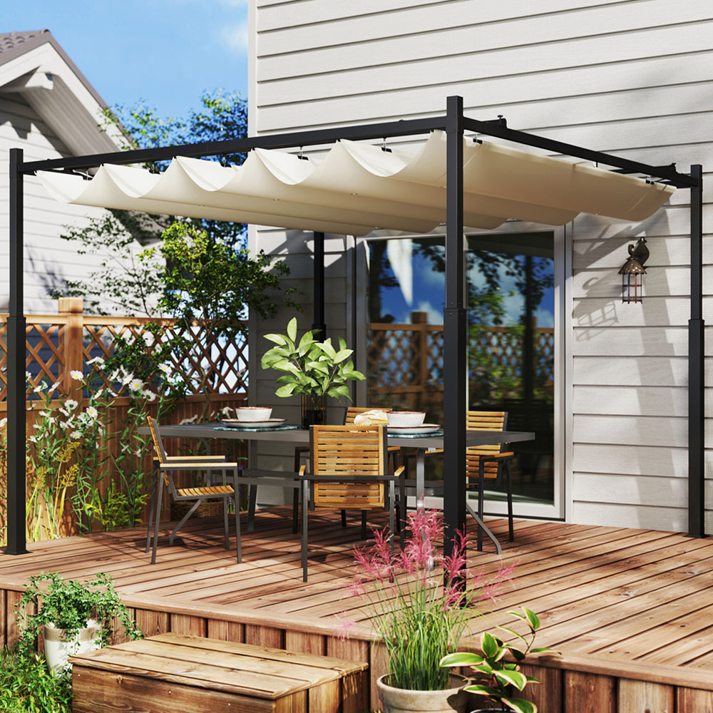 Let the sun shine through how you want, as you gather round inside with this Outsunny 3 x 3m) retractable pergola. It's fitted with a retractable fabric canopy: set it to a position of your choice. It provides UPF30+ protection for safety and has a magnetic pad to secure in place. A powder coated steel pergola means a strong core, with thick leg ends for extra sturdiness.
