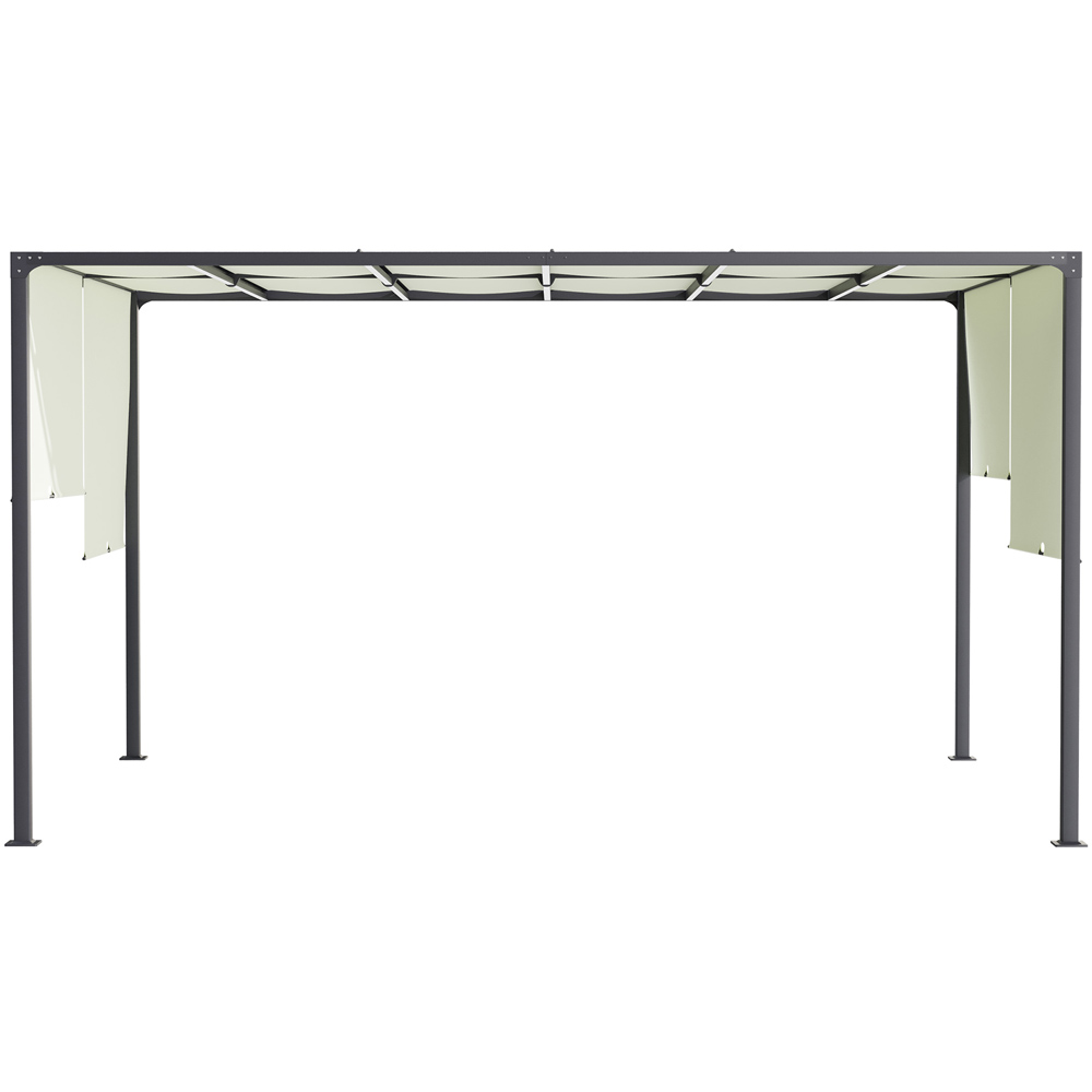 Extend the shaded area of your garden virtually anywhere, day or night. This Outsunny 3 x 4m pergola canopy offers an open space with a sliding roof that provides shade in different positions. Ten solar-powered LED light strips create a soft glow when it gets dark. Metal frame for a strong structure, with included accessories to pin it to the ground for extra stability.
