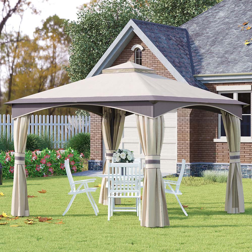 Outsunny 3 x 3m Brown Double Roof Outdoor Gazebo with Curtains