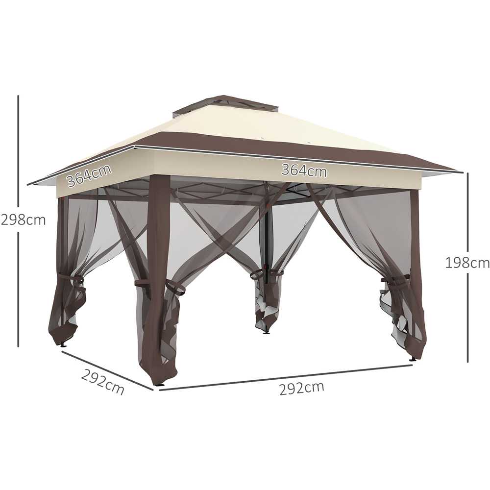 Do you want a shaded place for camping, festivals, tailgates, or garden events? This practical pop-up garden tent is a good choice. The roller bag makes it easy to carry this folding tent. The centre lock's automatic opening and retracting function provides great convenience for use and storage. Take this charming patio screen tent and enjoy your leisure time.