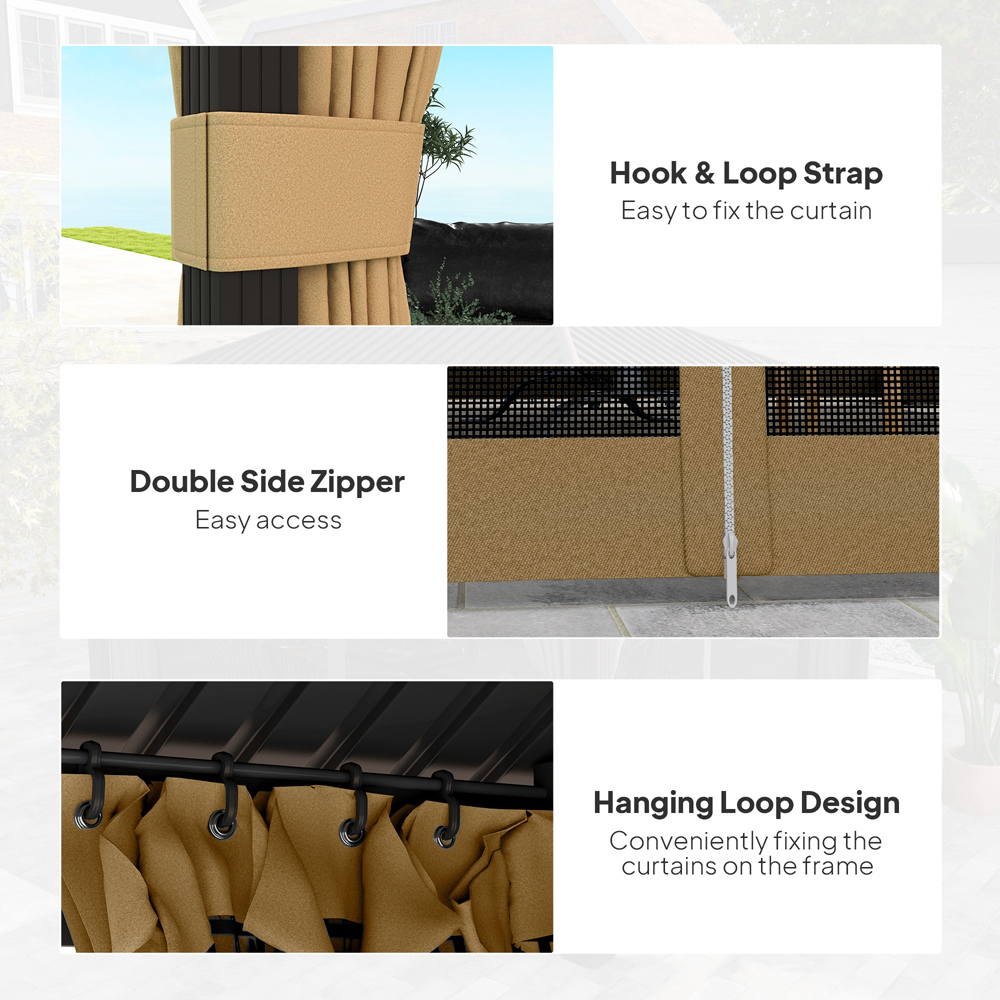 Outsunny 3.6 x 3m Brown Metal Hard Top Gazebo with Screened Curtain
