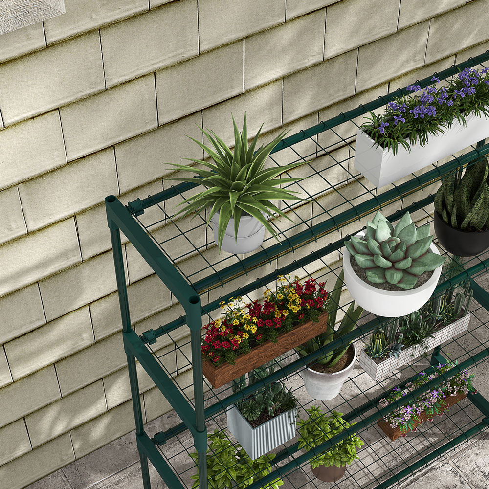 An excellent place to hold and show off all your plants- this Outsunny tiered plant stand. The four-tier design means it's got plenty of room to display plants, flowers - even ornaments and books if you wish. Made from steel, the structure of this plant shelf is tough and will support everything in place. Use it all over the home, from the porch through to the conservatory.