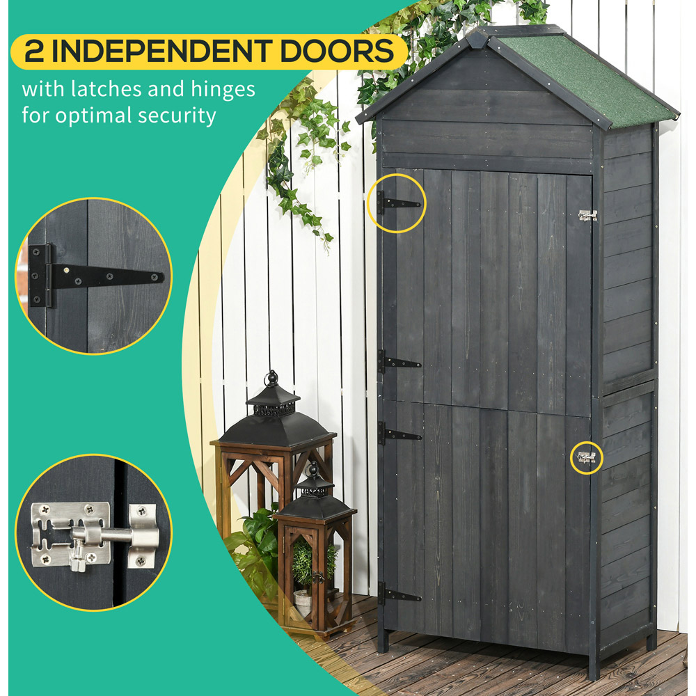 Outsunny 4 Tier Grey Wooden Garden Storage Shed with 3 Shelves