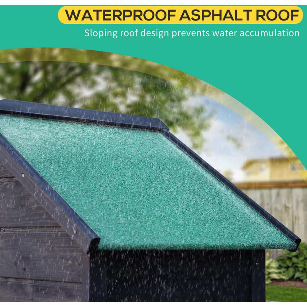 This Outsunny shed is a tall and narrow shed with three storage shelves for neat organisation and an open right side for storing large tools and equipment, making it a suitable storage solution for compact spaces. It's made from fir wood and has a sloped roof to prevent water build-up, the asphalt covering further improves the water build-up prevention. It also has two lockable doors for extra security.