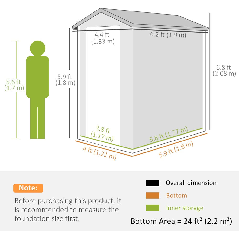 Secure your garden tools and outdoor essentials in the Outsunny 4 x 3ft garden tool shed, featuring a robust aluminium frame and lasting plastic walls designed for external use. This lockable garden shed ensures safety and includes two air vents and a window for ventilation and light. A foundation is provided for stable positioning. Our tool shed offers 4.4ft x 3.3ft of space, suitable for storing gardening tools, equipment and outdoor supplies. This plastic tool shed has sustainability features recognized by trusted certifications (Global Recycled Standard). The sloping roof prevents water accumulation, protecting the outdoor shed from rust and damage.