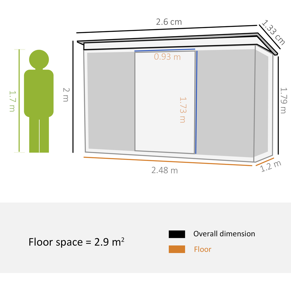 Keep your garden equipment secure with Outsunny Pent Roofed Metal Storage Shed 4.4 x 8.5ft. This corner garden shed is also spacious enough as a bike storage shed for outdoor adventurers. The clear front pieces allow natural light to radiate inside, making garden metal sheds easy to see inside during the day, without having to use any electricity. With the freestanding design, you can set up wherever required.