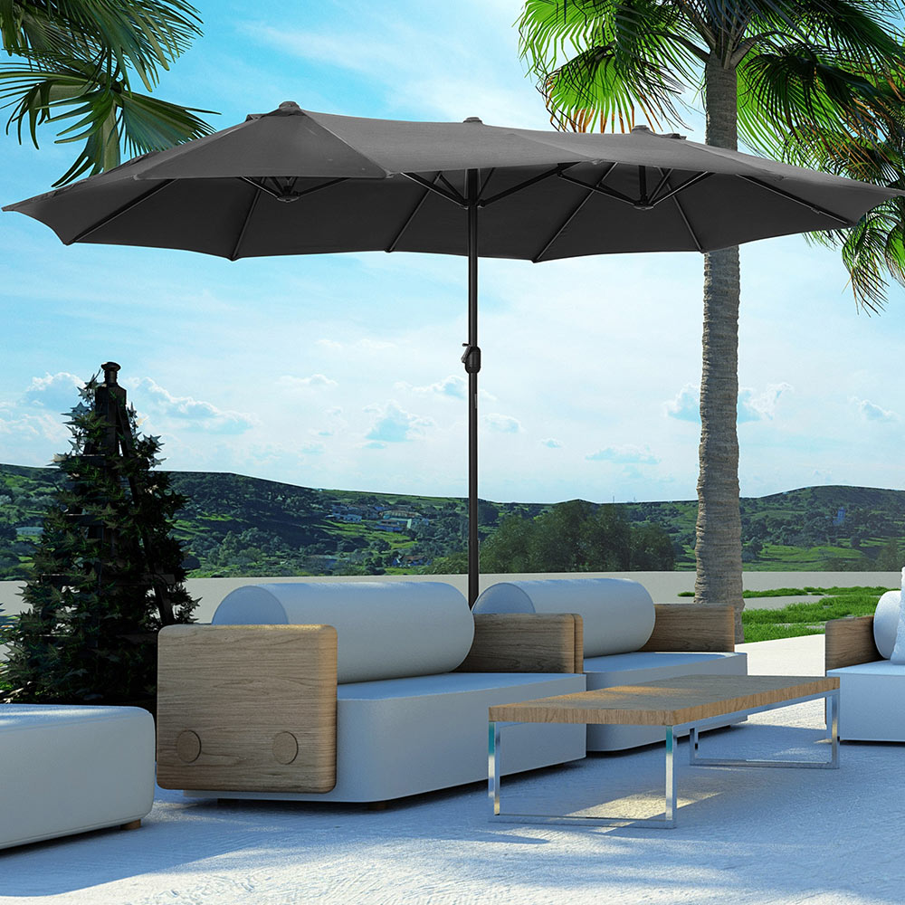 Practical and stylish, there's no better way to enjoy the sun than with this grey led parasol from Outsunny. In a bright colour, double canopy design, this garden shelter covers a 4.6m diameter to ensure you are completely covered all day long. Built from metal to ensure strength and durability, the sun shades for the garden pole connect to the canopy via 12 ribs for added support. This large parasol is UV and light rain resistant and will keep you protected all day long. The solar parasol, finished with a crank lift, can be opened and closed in an instant. Looking for a way to keep your parasol secure and protected and enjoy some shade? Check out our selection of parasol bases, designed to keep your parasol in place while you relax and parasol cover to keep them protected.
