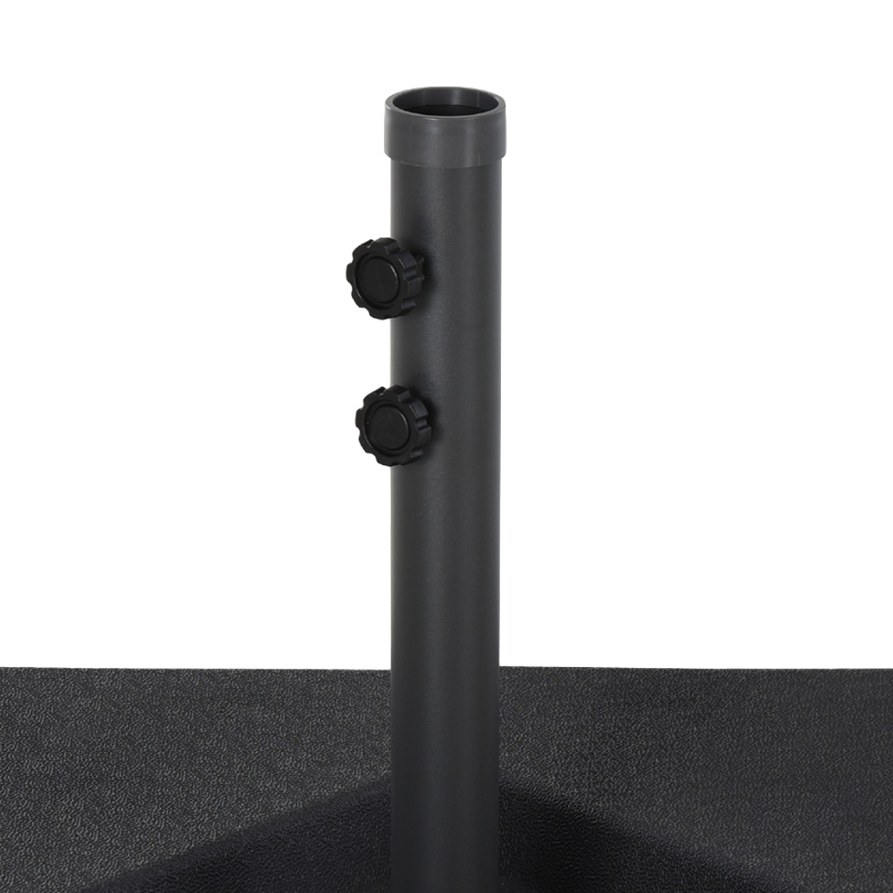 Keep your parasol held firmly in place with this four-piece weighted base from Outsunny. The parasol base is made from strong HDPE plastic - will withstands harsh weather conditions. The pack contains four pieces, which fit together on the supplied steel cross base, fitting parasol poles with a 48mm diameter. Each part holds 15 litres of water or 18kg of sand and is filled with the side sprout. Each base fits together on the supplied steel cross base for easy storage and transportation. Easy to carry when empty. Whether it's for the home or commercial premises, this is the parasol base for you. It can be cleaned easily.