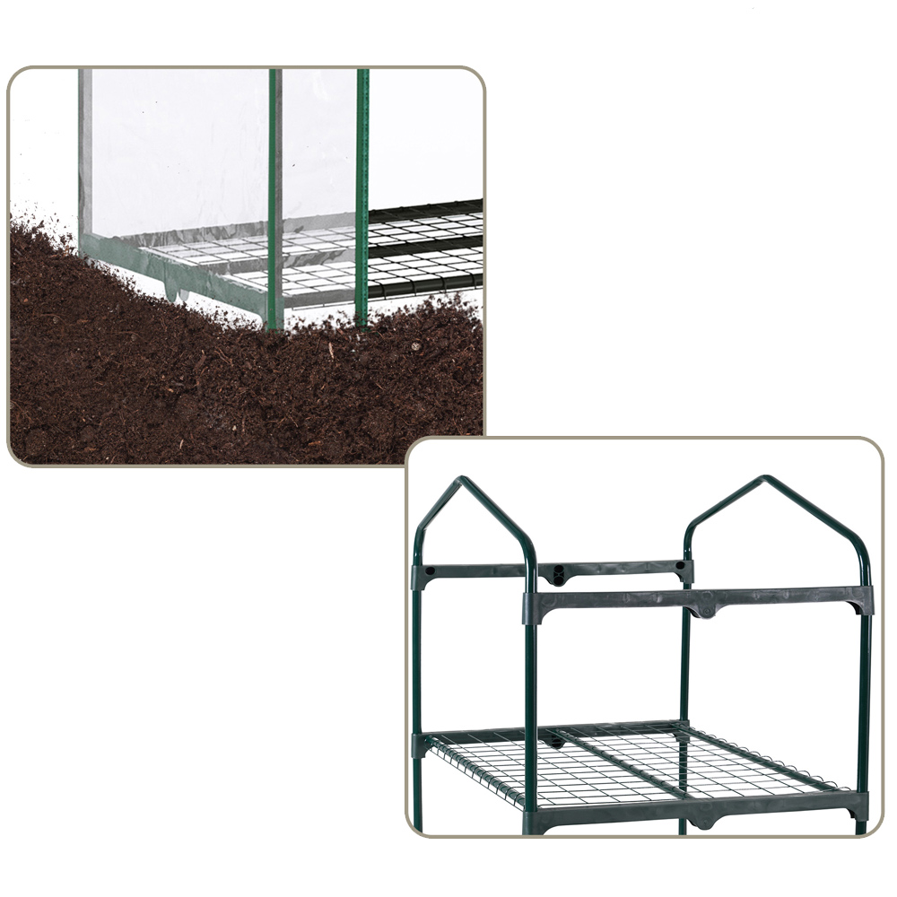 Protect and grow your plants in cold weather outside with this portable greenhouse from Outsunny. Made with a strong powder-coated steel frame, it features four inside shelves to keep your plants, herbs and vegetables neatly displayed and organised. Ideal for smaller spaces, such as patios, balconies, and backyards. Double zipped door provides easy access and can be rolled up for better ventilation.