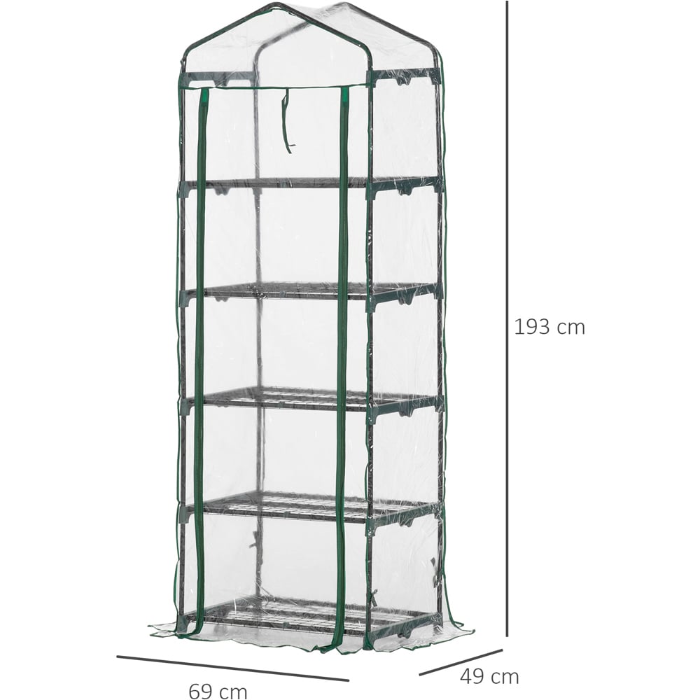 You can't rely on good weather all year round, which is why your plants can't either. For protection which guarantees growth, look to this mini greenhouse from Outsunny. Its small size means it can fit in smaller spots easily, with the five tiers helping to utilize the compact design in the most efficient way possible - providing plenty of room for your plants, vegetables, fruits and herbs. An easy way for you to grow plants, vegetables, flowers and more in small places. Suitable for beginner and advanced gardeners. The five-tier design gives you plenty of growing room without taking up a lot of space. Grid shelves prevent water and liquids from building up and causing damage to the structure. It has a zipped door for easy access. Dimensions: H193 x W49 x L69cm.