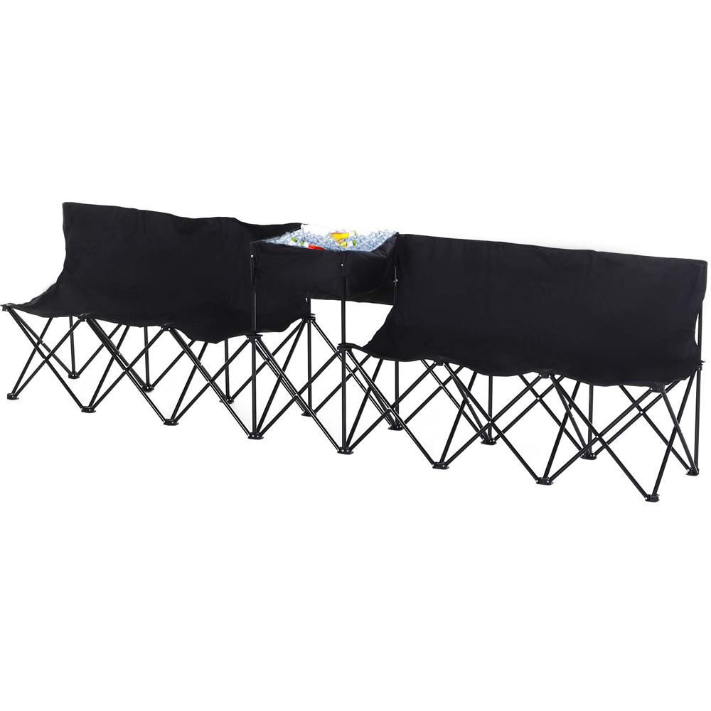 Outsunny 6 Seater Black Foldable Camping Bench with Cooler Bag