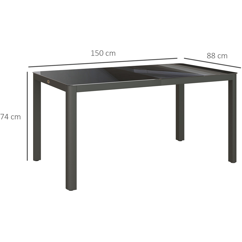 Elevate your dining experience with the Outsunny 6 Seater Garden Dining Table Grey. The table features a powder-coated aluminium frame for a strong and supportive core and is fitted with a tempered glass tabletop. This dining table measures 150 x 88cm, making it a great choice for serving family or friends gatherings. Protect your garden furniture with our durable and waterproof covers. Explore our wide range of heavy-duty Garden Furniture covers to find the perfect fit for your needs.