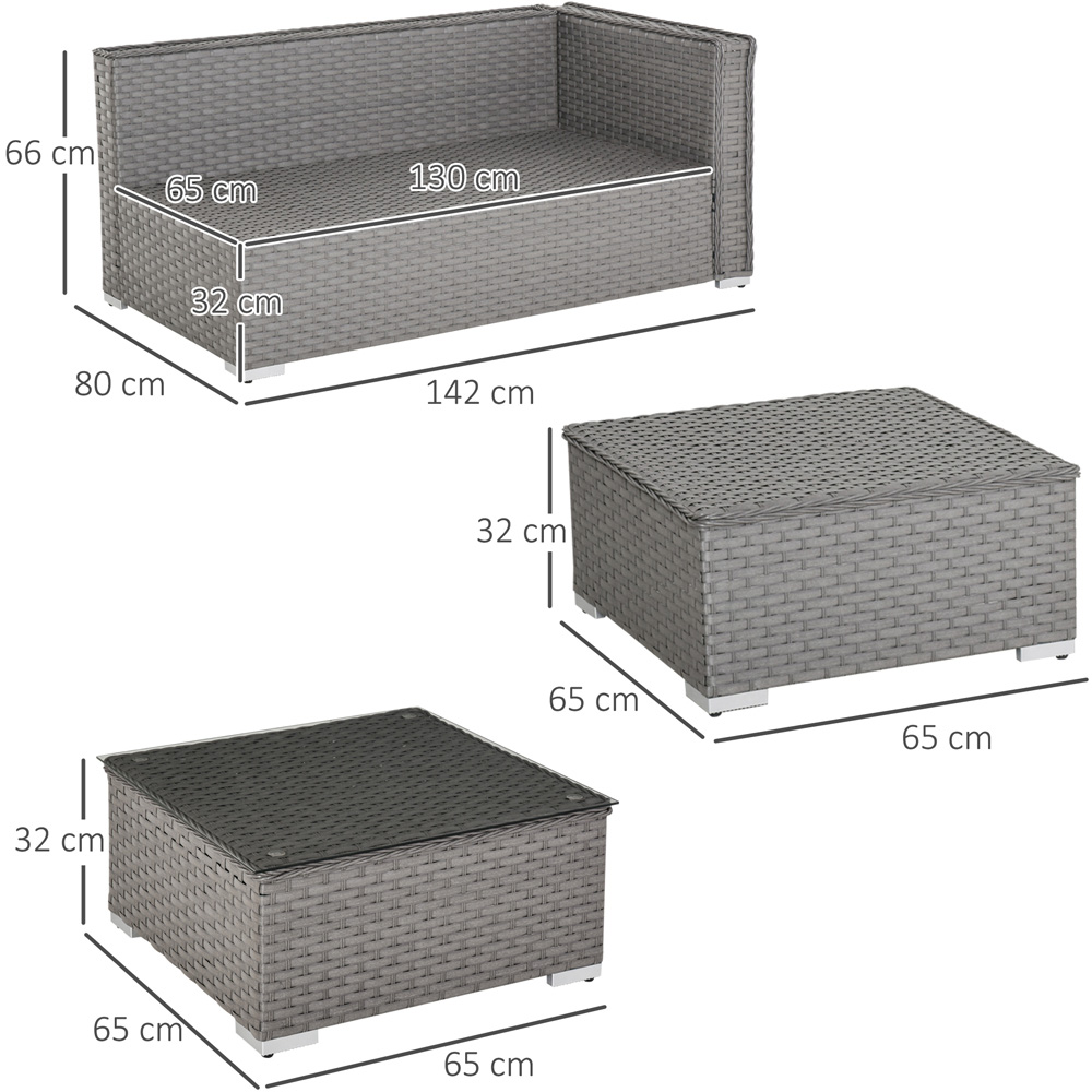 Outsunny 4 Seater Grey Rattan Lounge Set