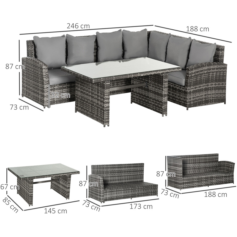 Outsunny 7 Seater Grey PE Rattan Dining Sofa Set