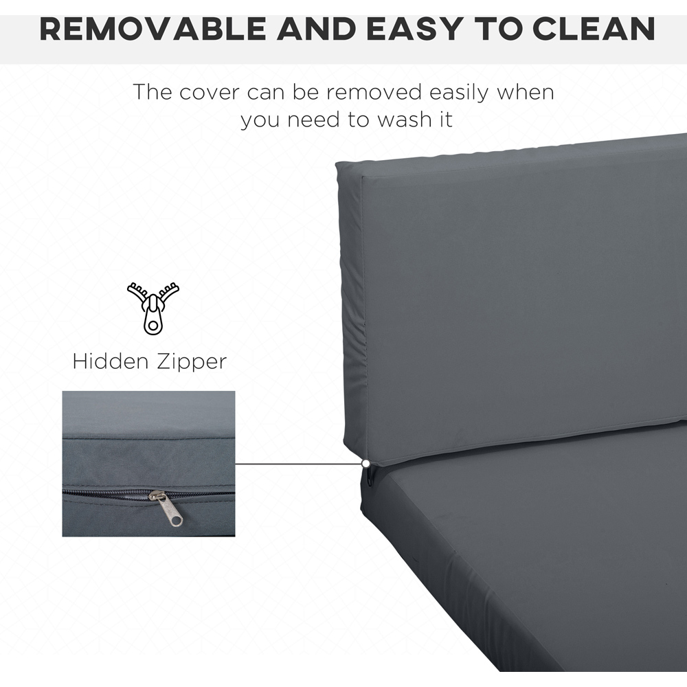 Add comfort to your space with the Outsunny Grey Outdoor Cushion Pad Set. This set includes three small seat cushions, a big seat cushion and three back cushions. Comfortable and soft, each cushion is filled with thick cotton to offer optimum comfort. Also, the polyester covers are breathable and fade-resistant, with a zip fastening to remove and clean easily. So, replace those worn-out cushions with these new ones to bring your garden furniture back to life.