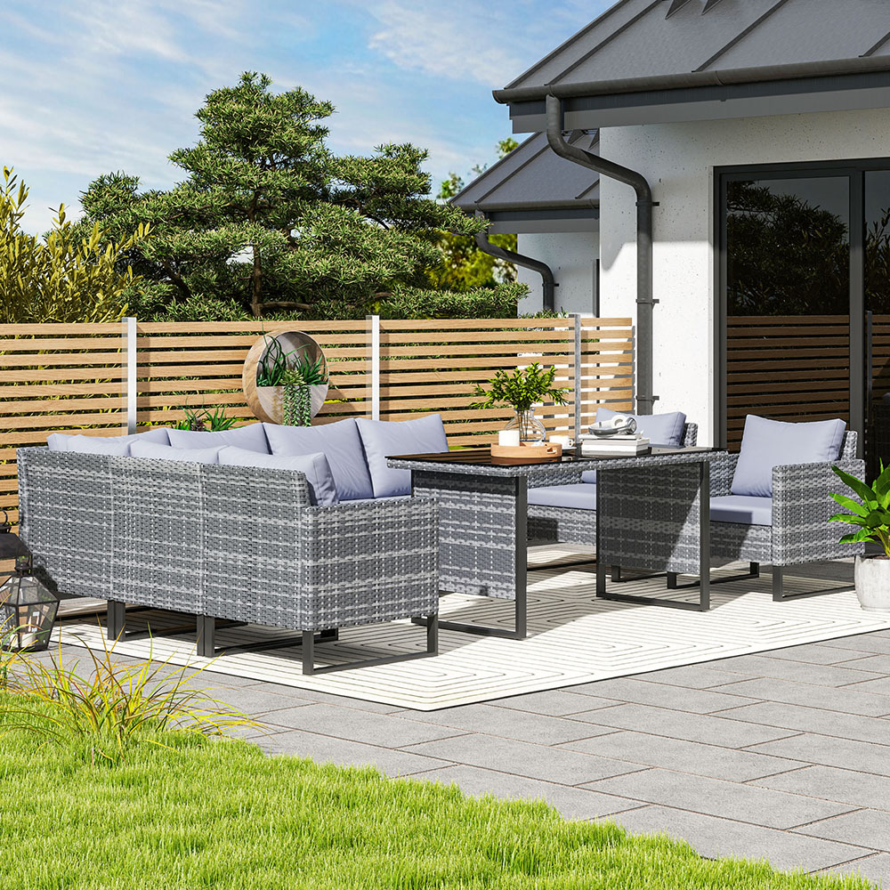 Outsunny 7 Seater Grey Rattan Corner Sofa Set with Table