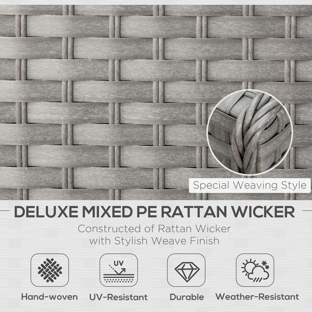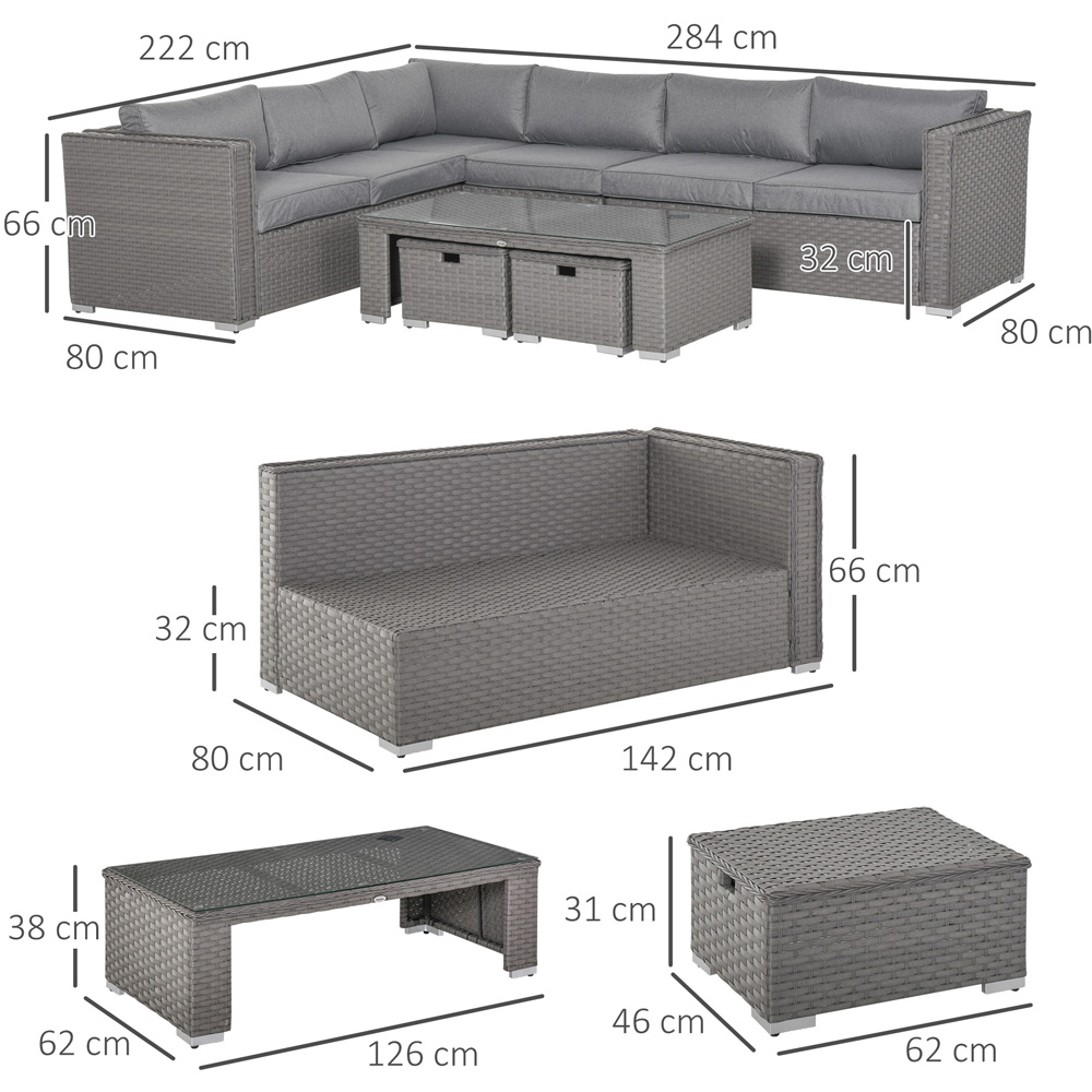 Add a lavish touch to your outdoor space with the Outsunny Rattan Sofa Lounge Set. This grey set includes three corner sofas, two footstools and a long table. The coffee table features a smooth glass top with a woven rattan finish. This set features a strong aluminium frame covered with sturdy and durable PE wicker for protection and durability. The thickly padded seats and back cushions provide high-quality comfort for relaxation purposes, these cushion covers are removable and washable. Protect your garden furniture with our durable and waterproof covers. Explore our wide range of heavy-duty Garden Furniture covers to find the perfect fit for your needs.