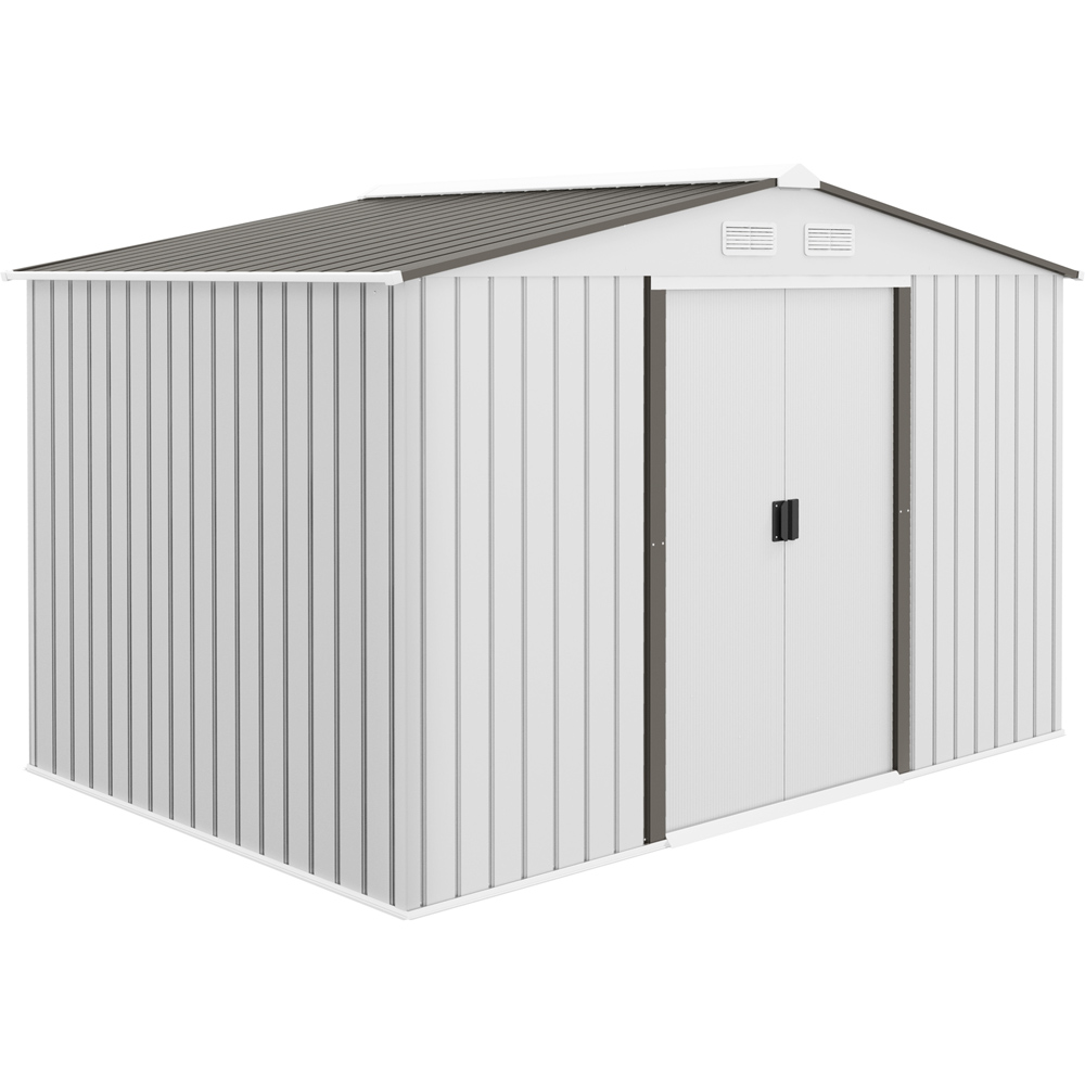 Keep your garden equipment and outdoor essentials locked away securely with this metal shed from Outsunny. Built from galvanised steel for strength, it comes with a lockable double sliding door on the front for easy access and four vents for air to circulate and prevent moisture buildup. The garden tool shed is finished with a protective weather coating and a foundation kit for it to stand level on the ground.