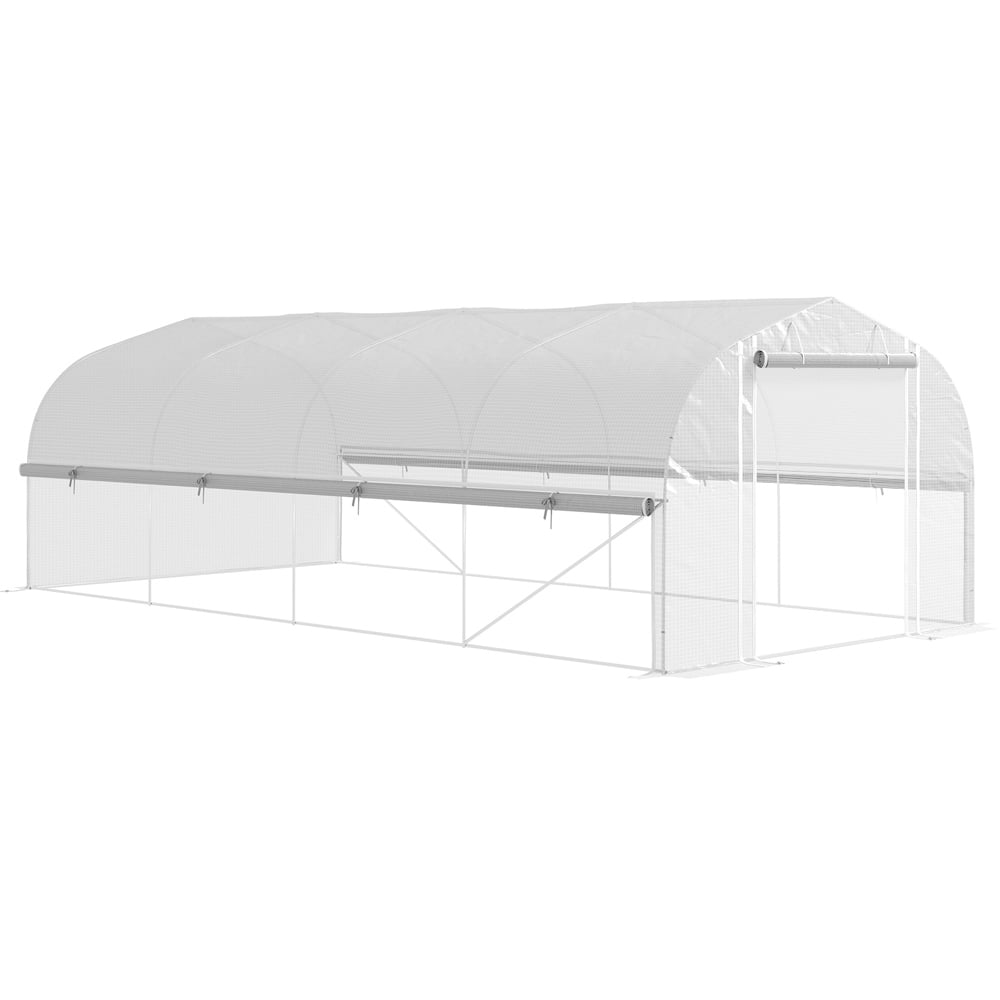 Extend the growing season, this year and beyond - thanks to this Outsunny open polytunnel greenhouse. A galvanised steel frame for it to stay in shape, with guy ropes and stakes included to pin to the ground. The 19.5 x 9.8ft size is great for holding plenty of plants - the open design means you can set it up inside how you want it. Zipped roll-up mesh door, eight mesh windows and two roll-up wall panels: easy access and ventilation, whenever.